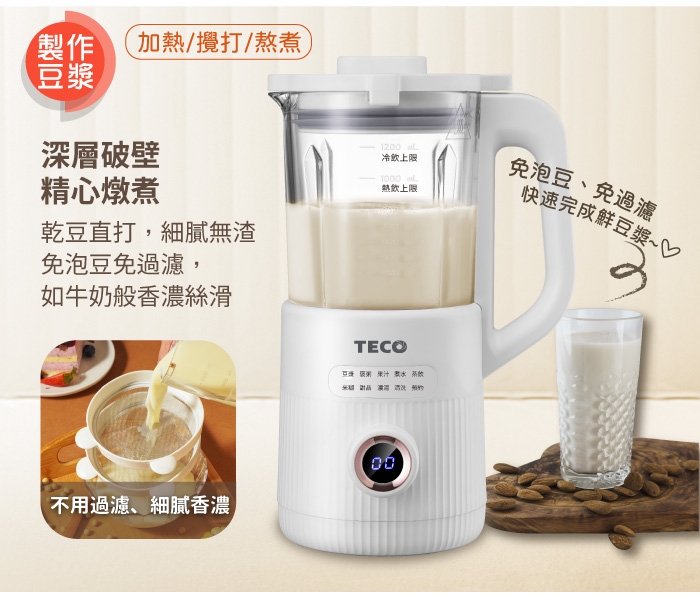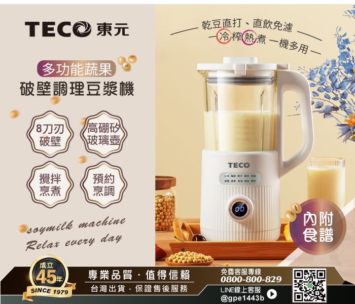 【TECO東元】多功能蔬果破壁冷熱調理豆漿機