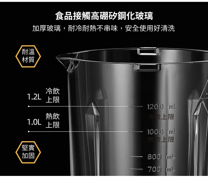 總容量:總容量1500ml(冷飲上限1200ml,熱飲上限:1000ml)