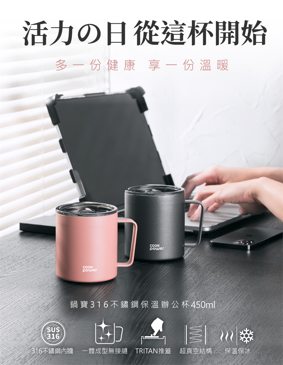 品名:鍋寶316不鏽鋼保溫辦公杯450ml