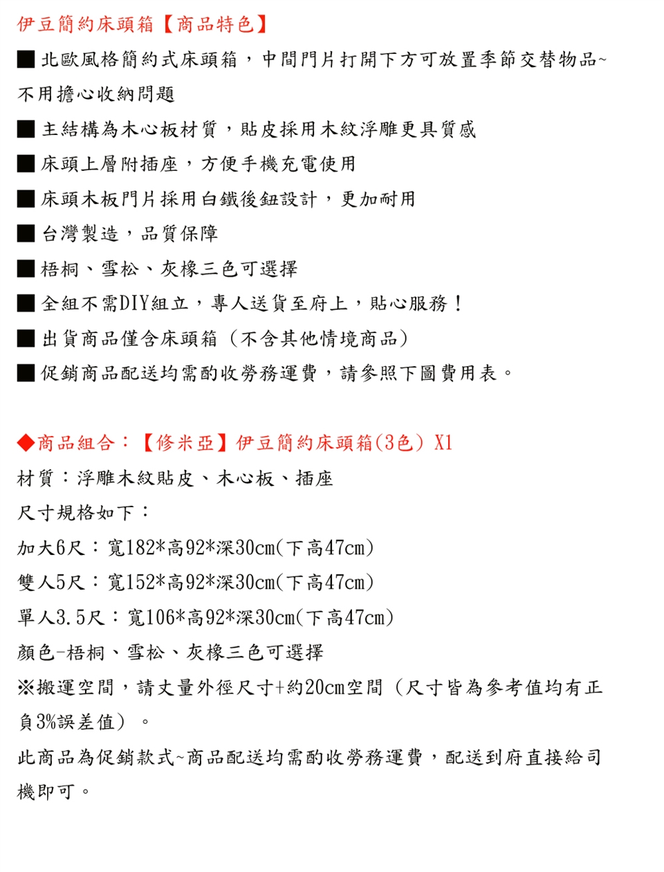 ◆ 下訂前請確認好尺寸與規格,訂錯規格、顏色不符等非商品瑕疵退貨,將酌收拆裝費,運費1500 (當場支付)