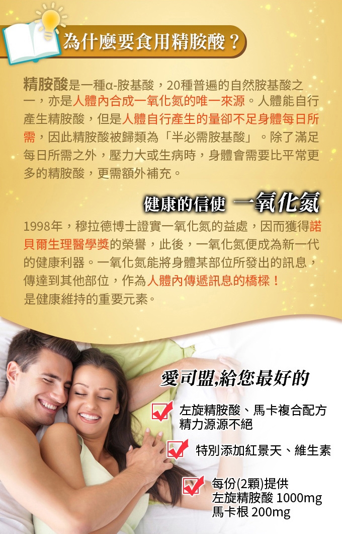 ◆產品成份:L-精胺酸、馬卡根、明膠、微晶纖維素、硬脂酸鎂、紅景天萃取物、