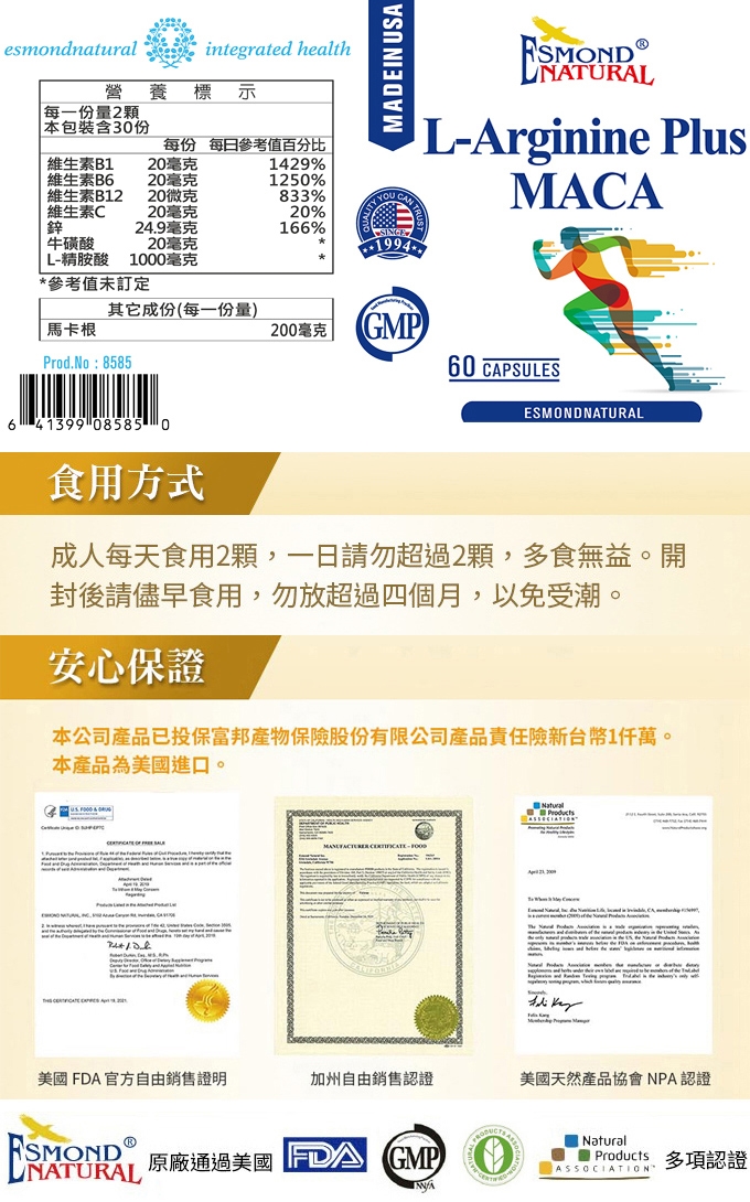 ◆製造廠:ESMOND NATURAL INC. IRWINDALE, CA 91706 U.S.A 製造廠