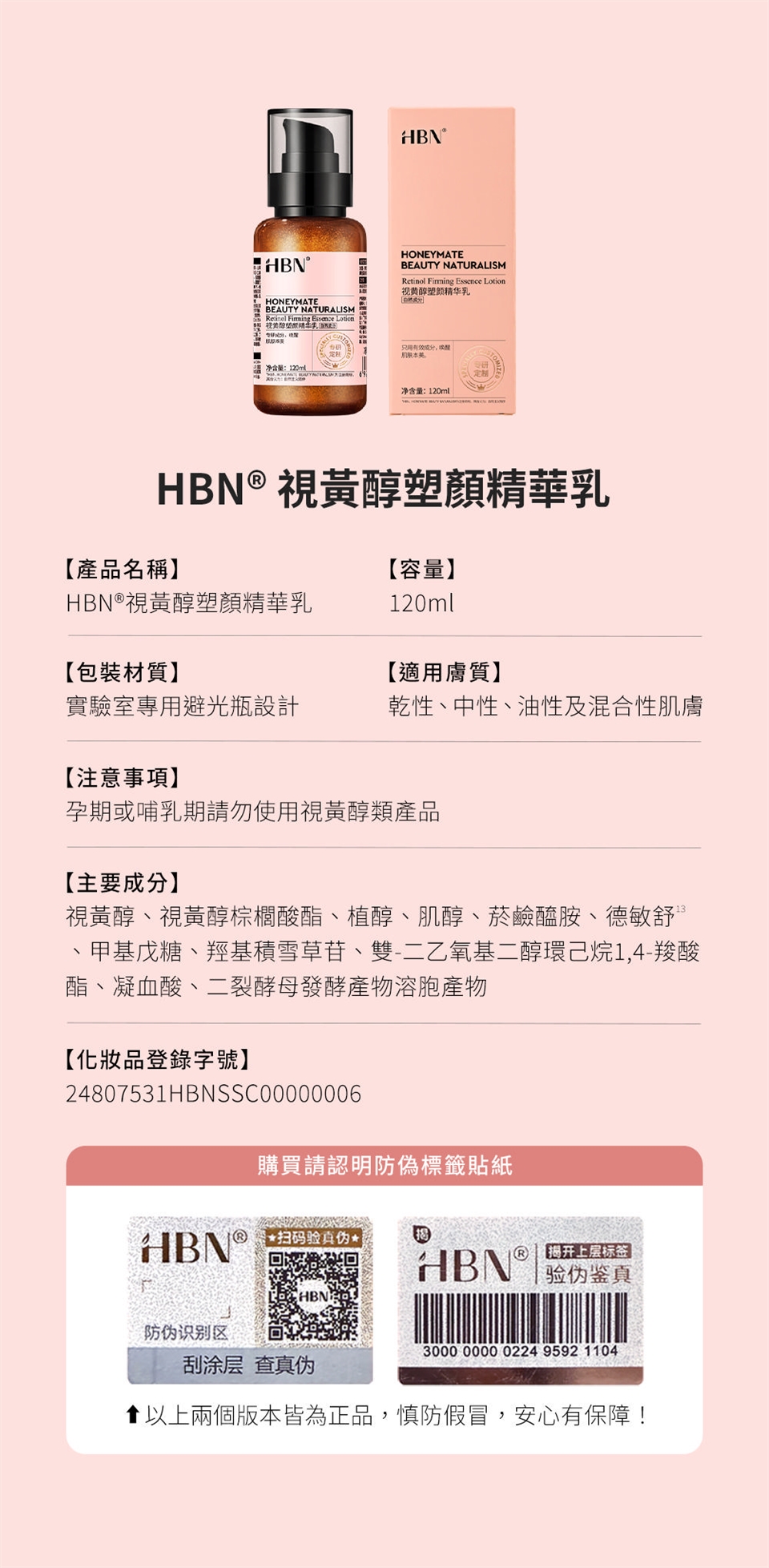 品名:【HBN官方】視黃醇塑顏精華乳 120ml (雙A乳2.0)