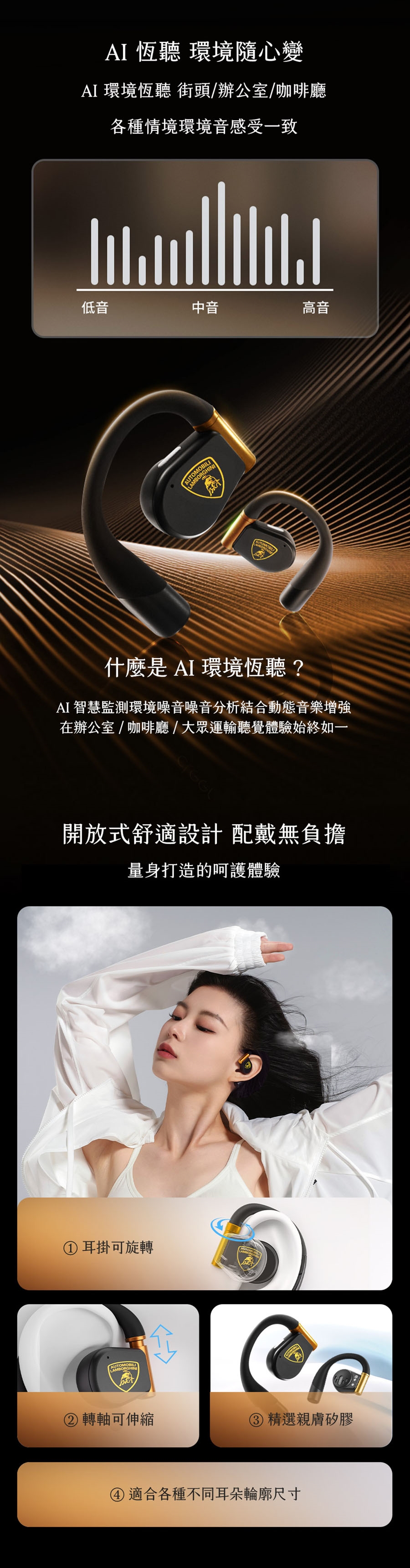 - 舒適好戴|耳掛可旋轉、伸縮、不挑耳型、配戴無感
