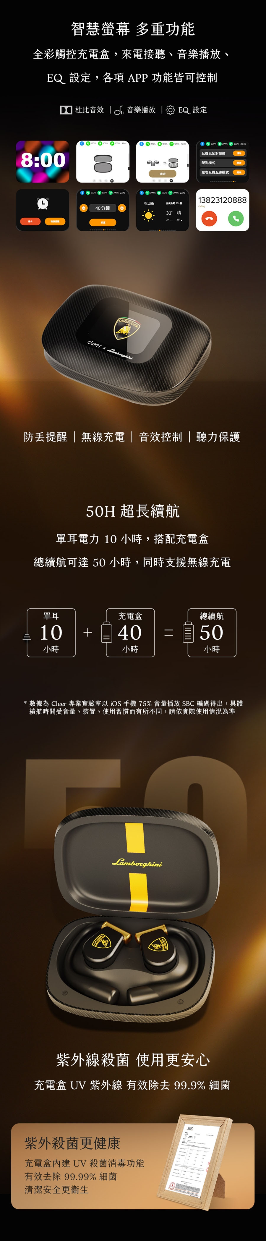 - 殺菌消毒|充電盒內建UV紫外線消毒燈,99.9%殺菌率