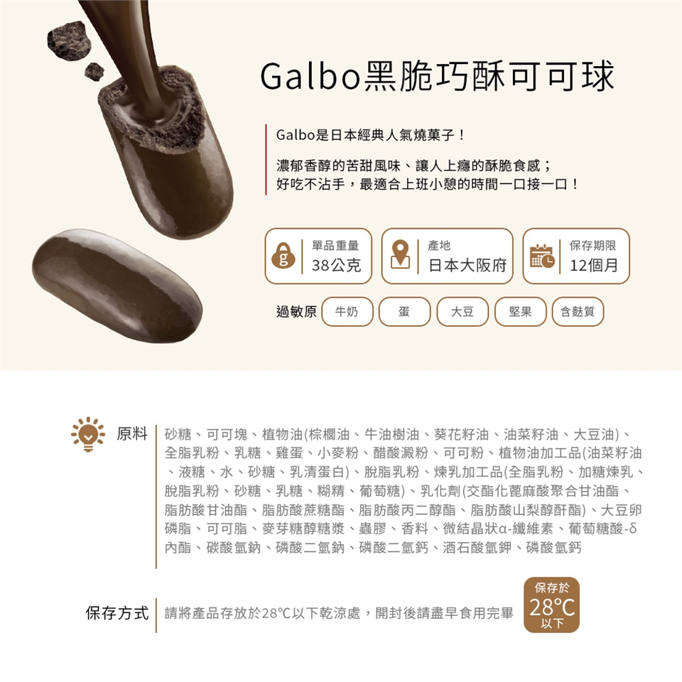 請將產品放置於28°C以下乾涼處,開封後請盡早食用。