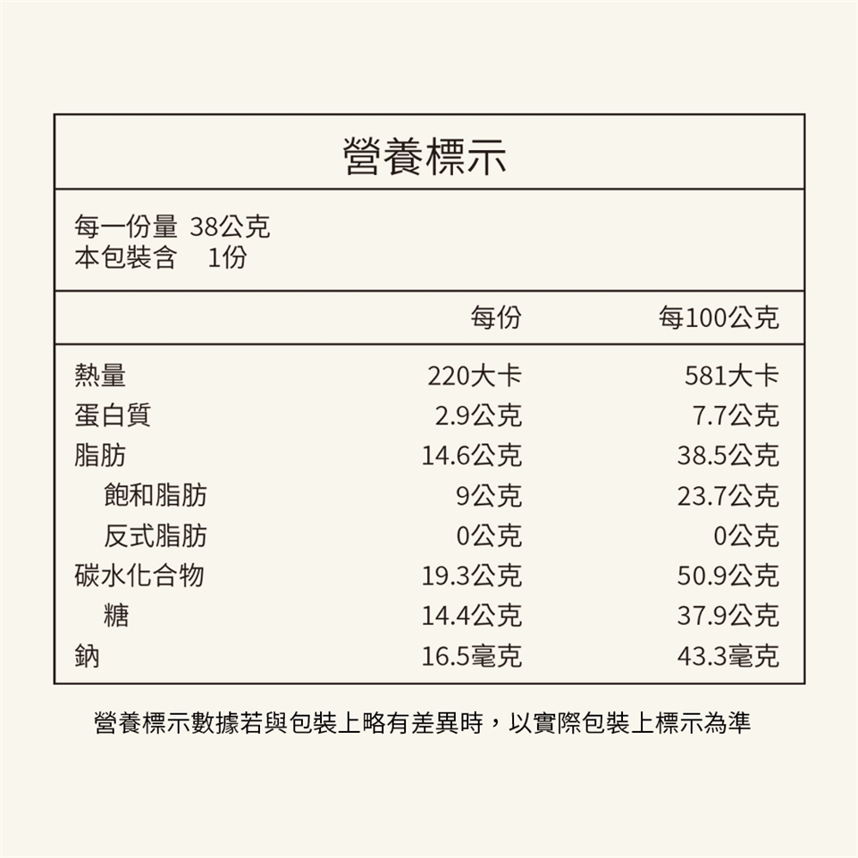 本產品含有牛奶、大豆、堅果及其製品。生產製程產房其設備或生產管線有處理芝麻、含麩質之穀物及其製品。