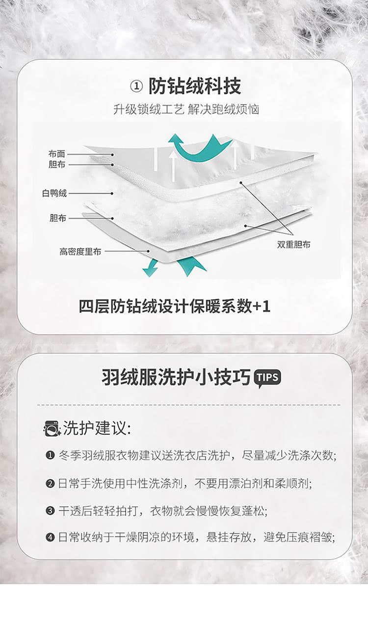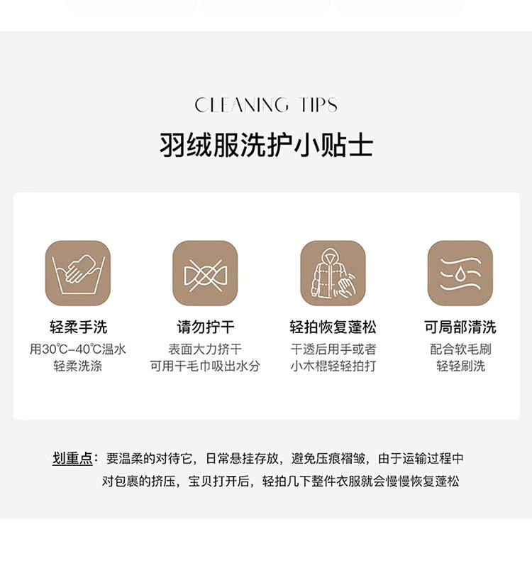 羽絨外套建議手洗用濕布擦拭晾乾請勿用機器洗滌