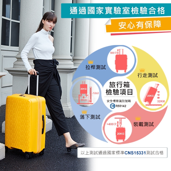 ● 國家核可實驗室,拉桿、行走、落下、裝載測試合格