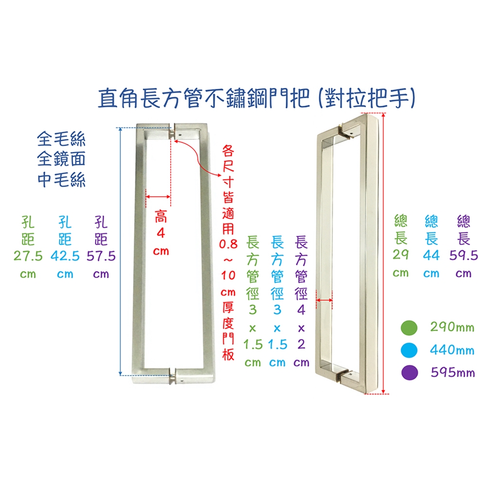 各尺寸皆適用0.8~10cm厚度之玻璃、實木、金屬門...