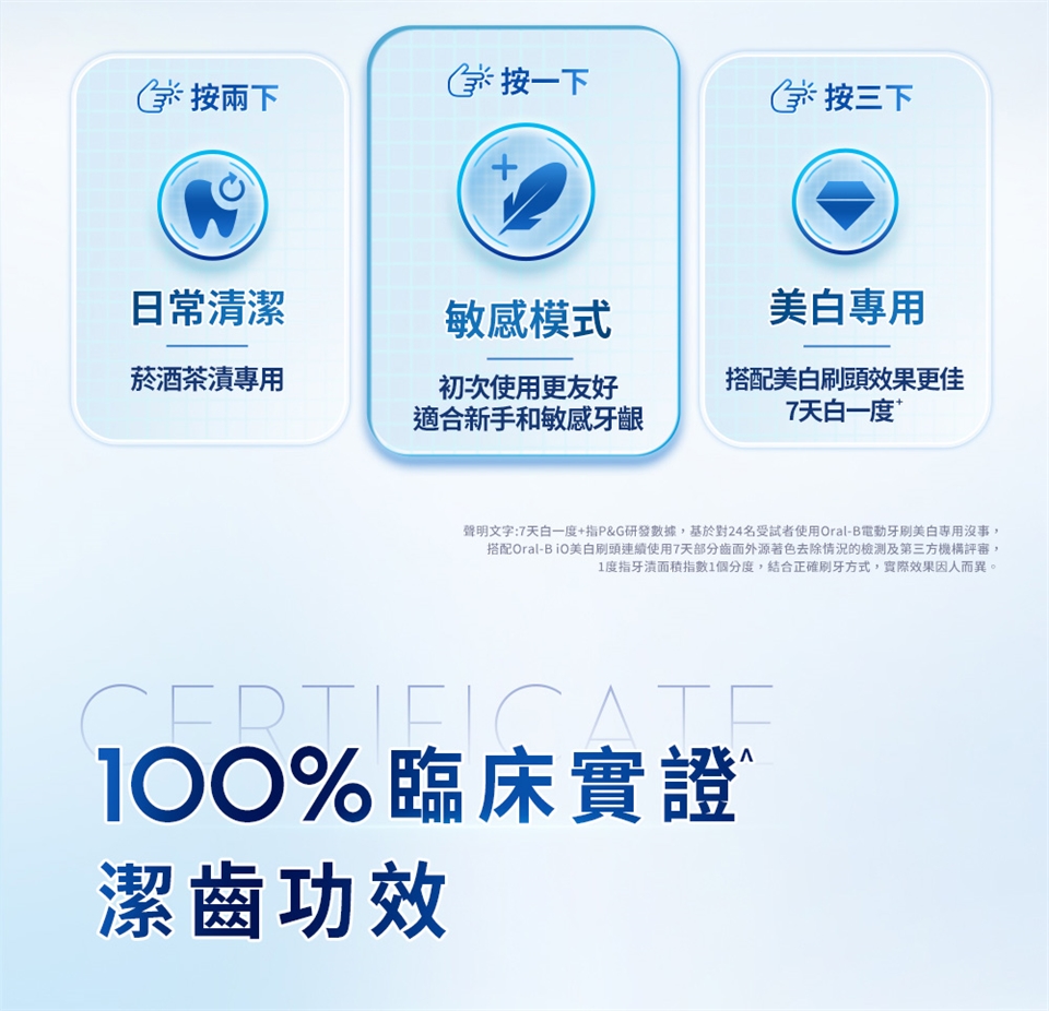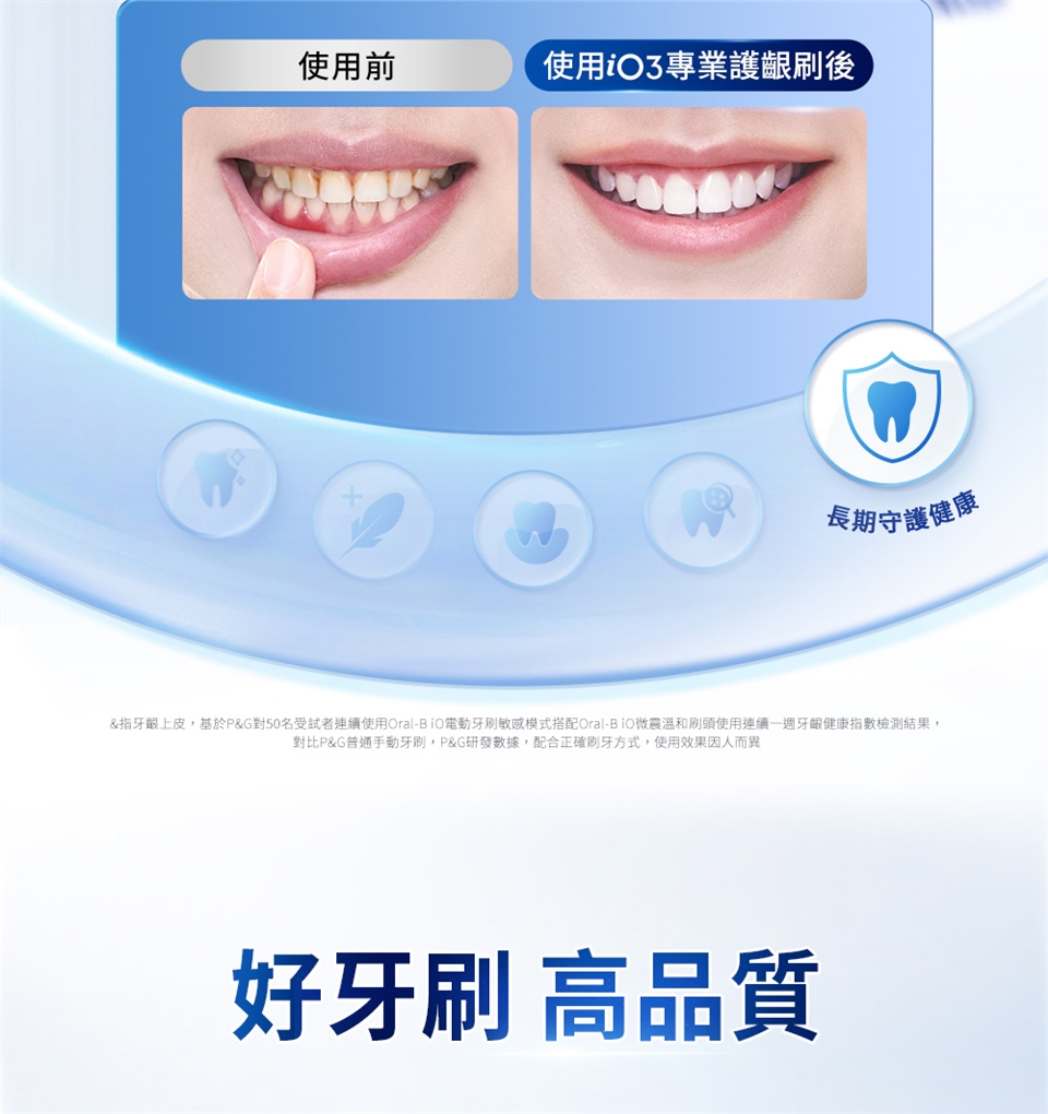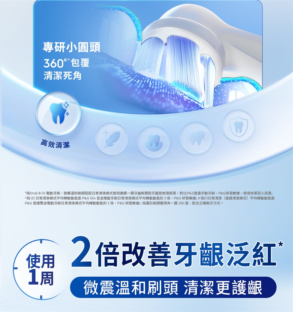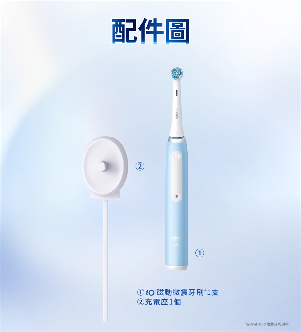 對應刷頭:iO系列刷頭(微震清潔刷頭、微震溫和刷頭、微震美白刷頭、微震精準清潔刷頭)