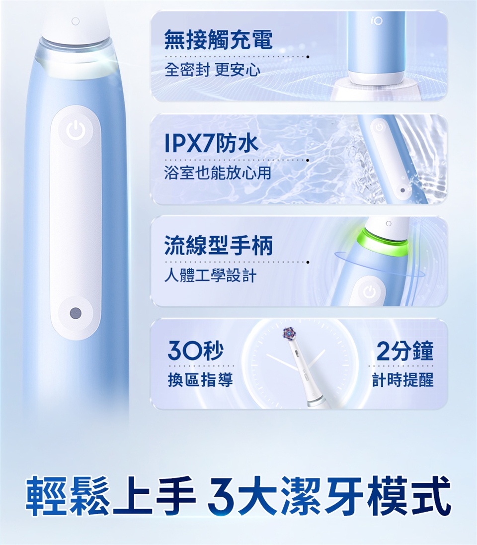品名:ORAL-B iO 3微震科技電動牙刷-冰川藍