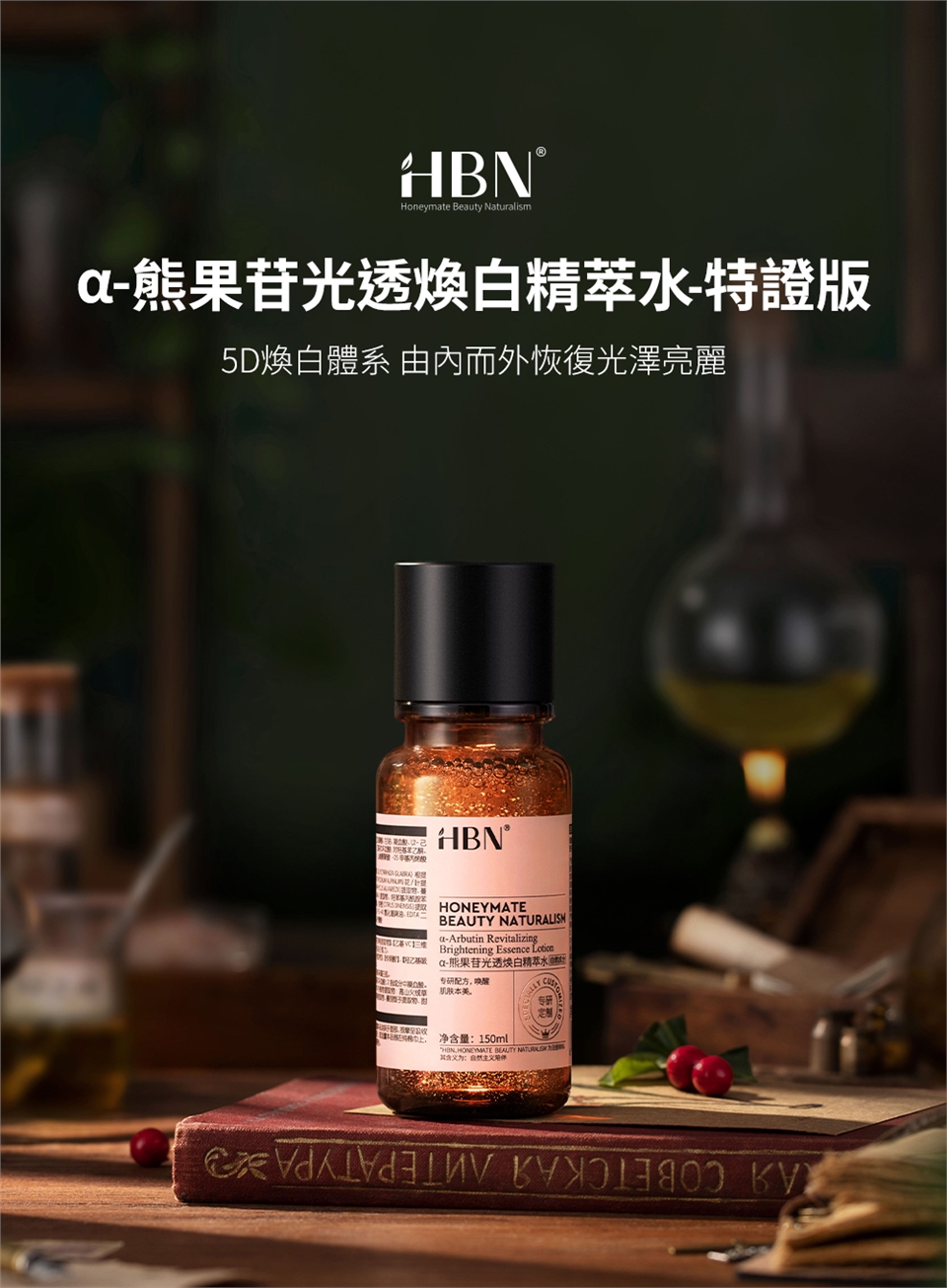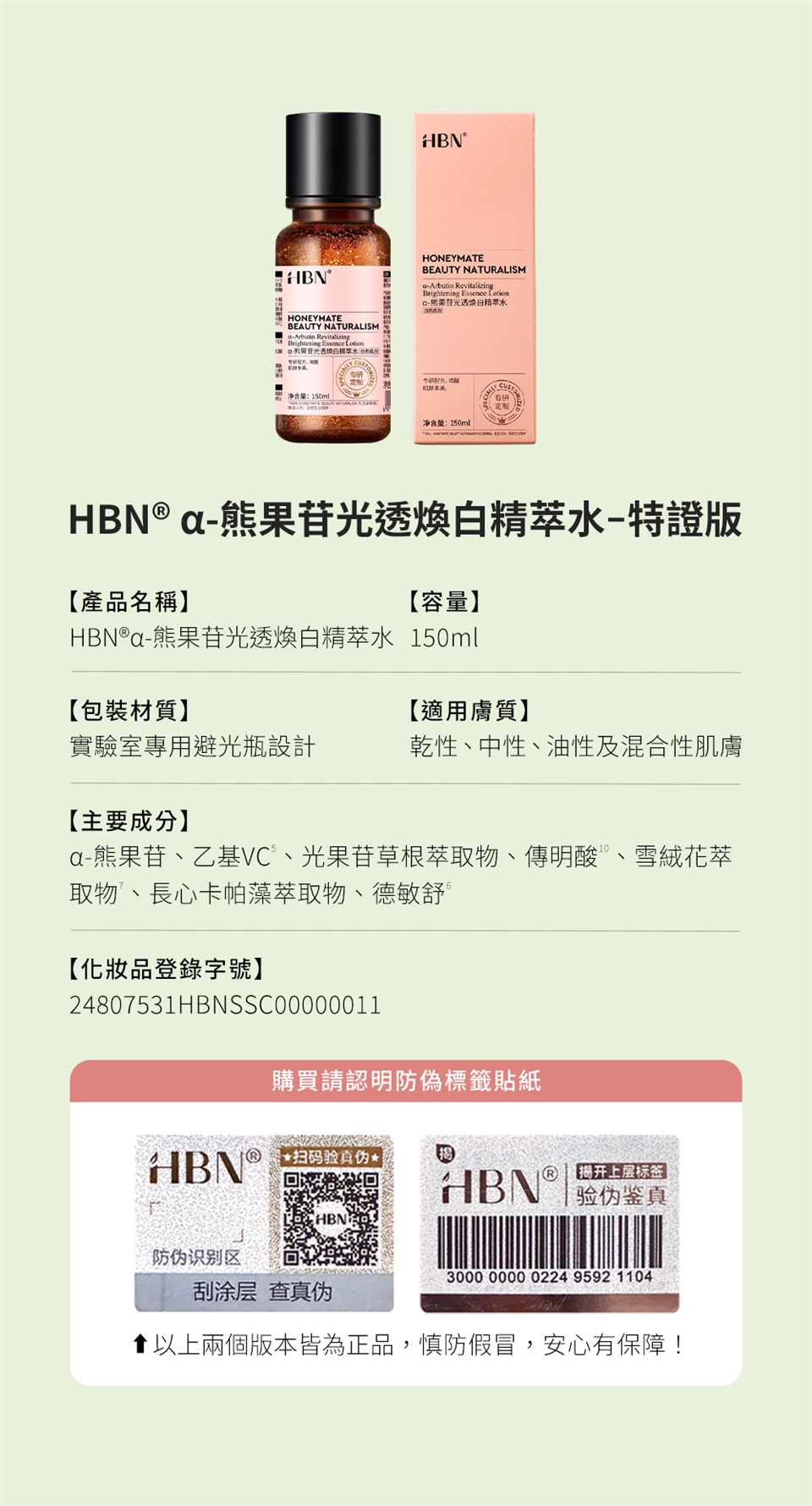 品名:【HBN官方】α-熊果苷光透煥白精萃水-特證版 150ml (發光水)