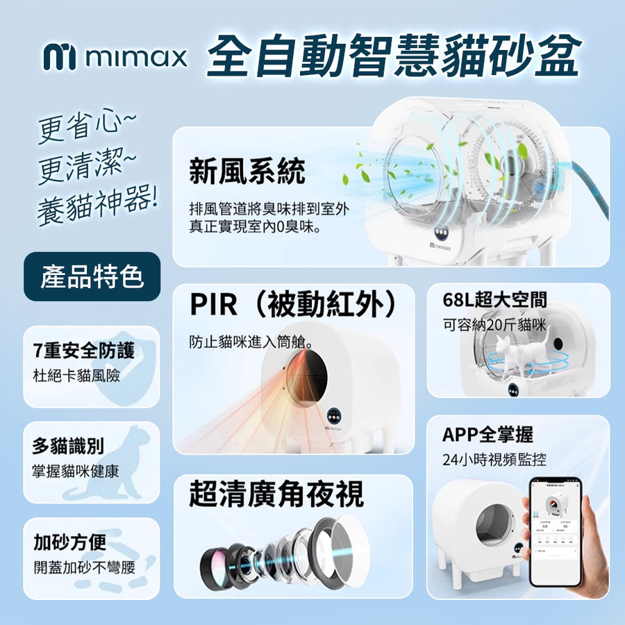 👍 自動鏟屎 / 站立開蓋倒砂 / 一鍵換砂 / 可拆洗