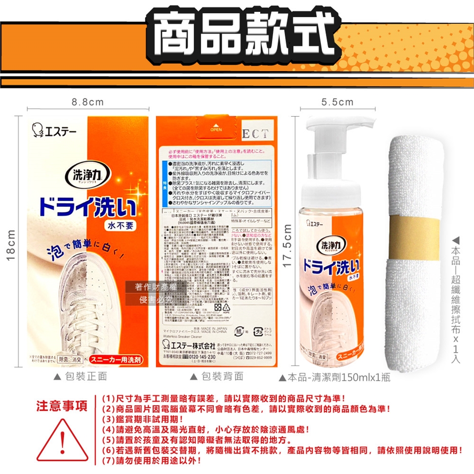 ●內容物:清潔劑150mlx1瓶、超纖維擦拭布x1入。
