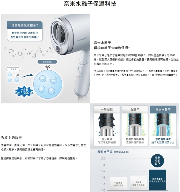 Panasonic 國際牌 奈米水離子可摺疊吹風機 EH-NA7M
