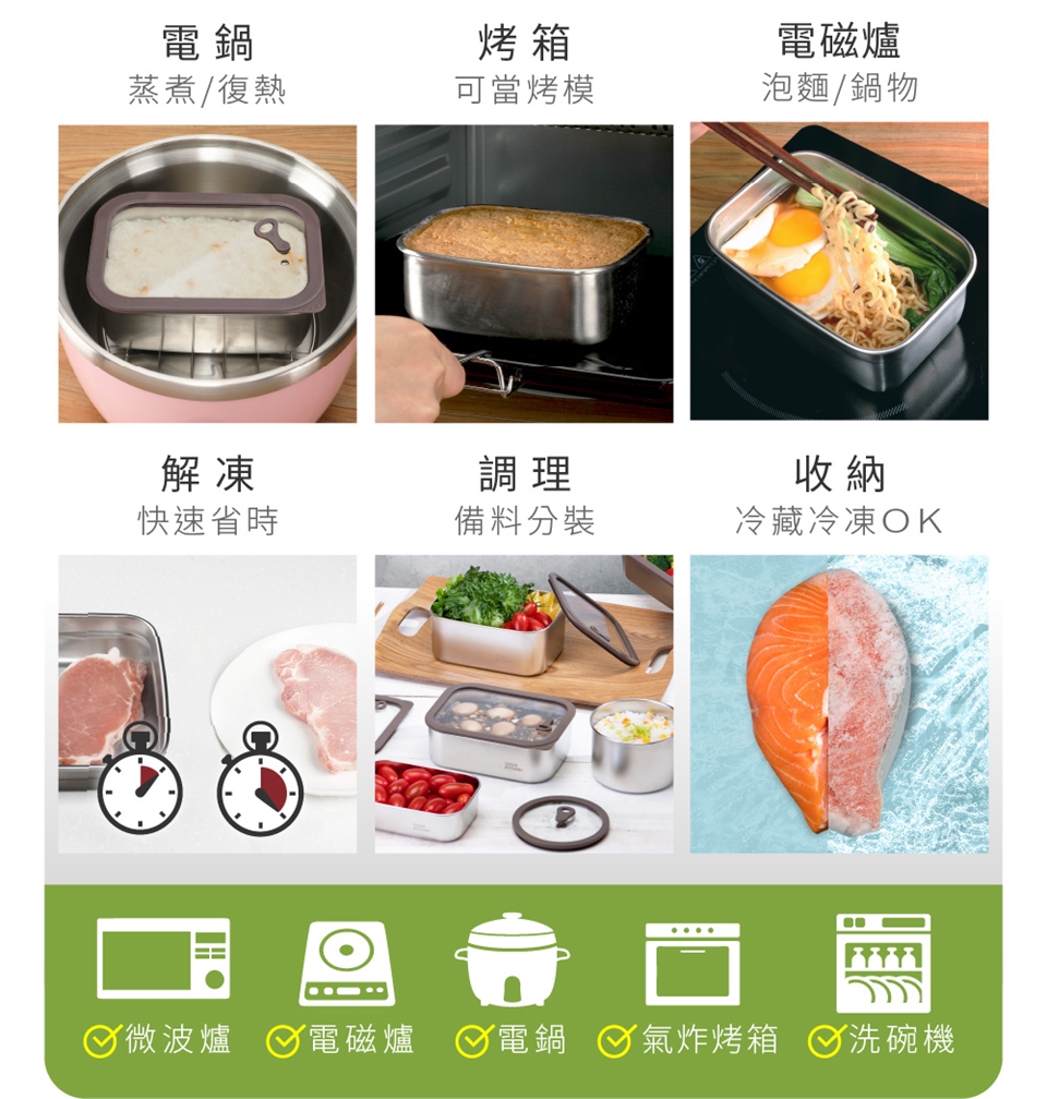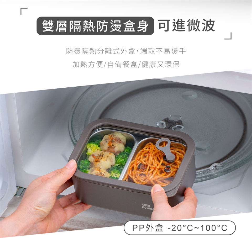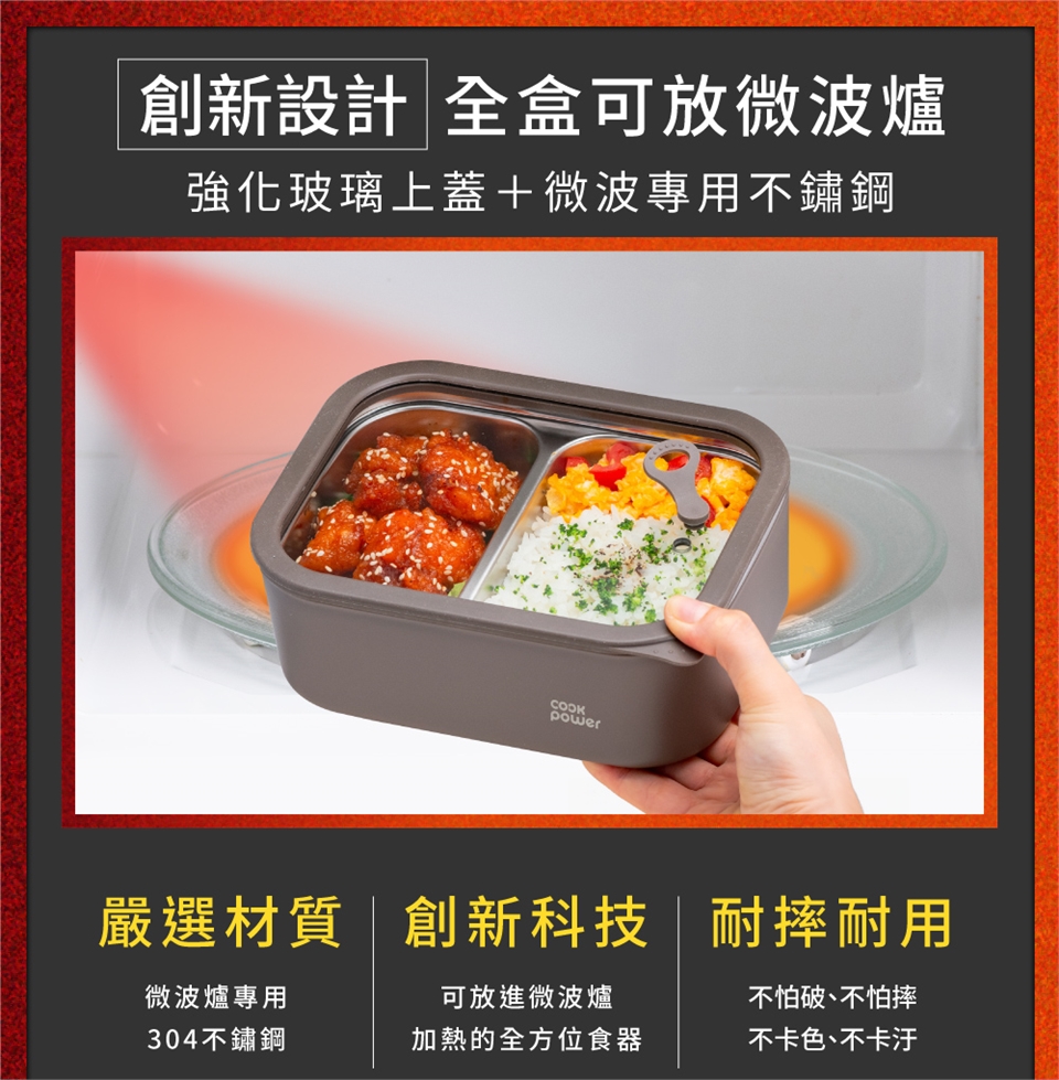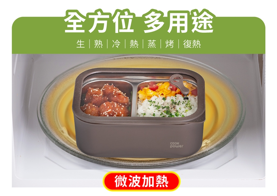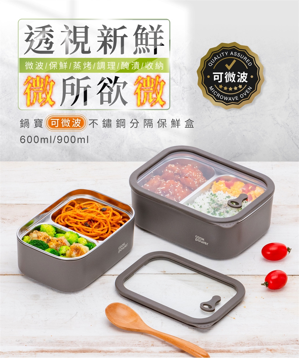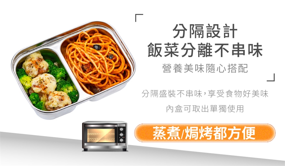 品名:鍋寶可微波不鏽鋼分隔保鮮盒600ML(長方形)