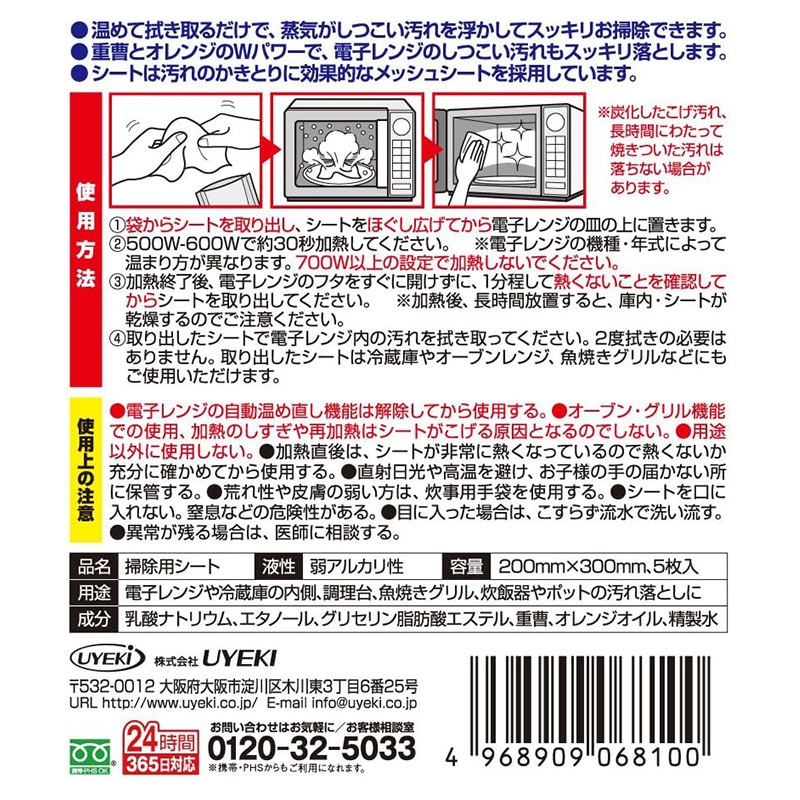 ◆商品名稱:【日本 UYEKI 】 蒸汽式 微波爐專用 清潔紙巾 (5入/盒) 微波爐清潔紙巾 拋棄式清潔巾