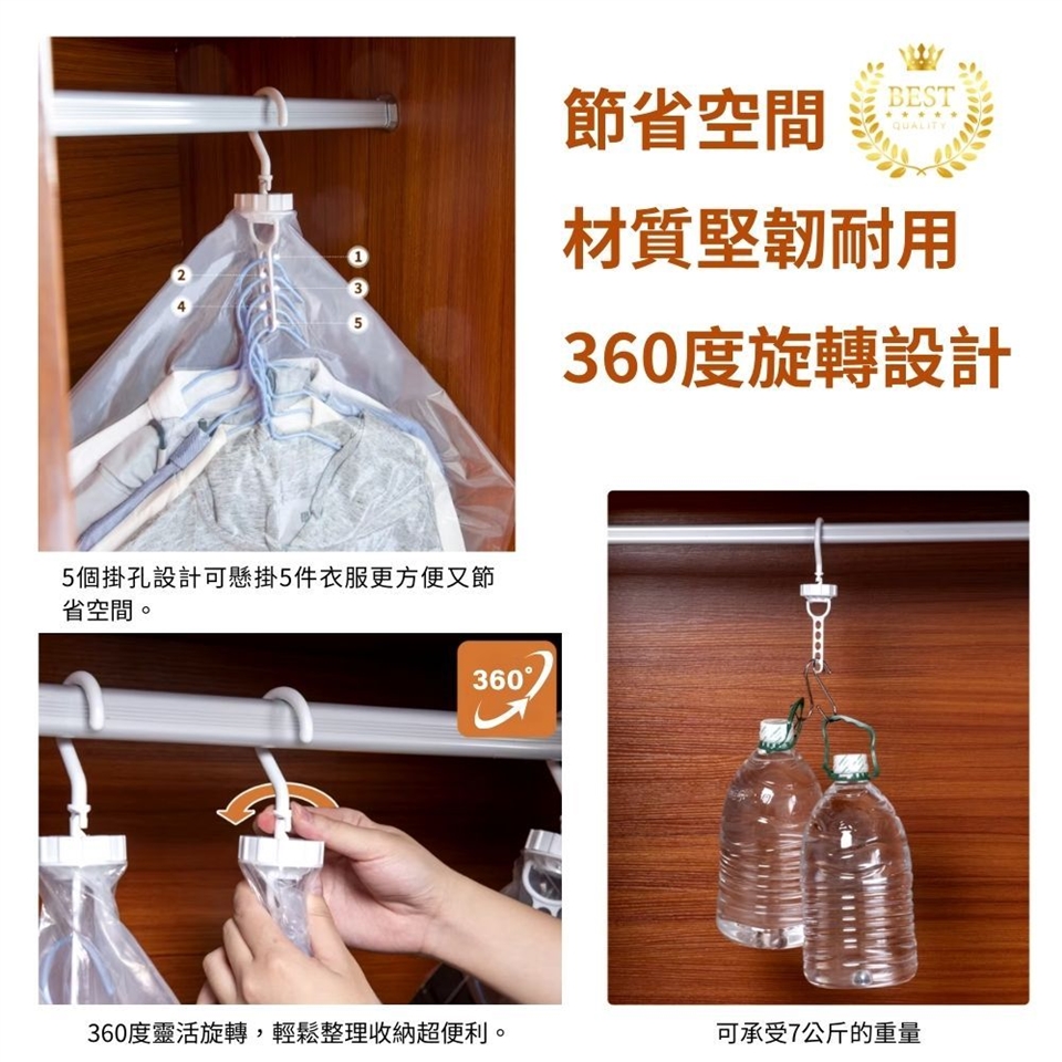 節省高達80%的空間!專為長外套、大衣、換季衣物設計,獨特5孔掛勾設計可掛5件衣服