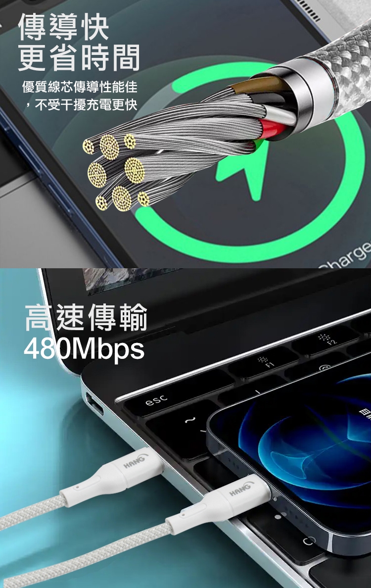 HANG R18 20W高密編織 Type-C to Lightning PD快充充電線100cm