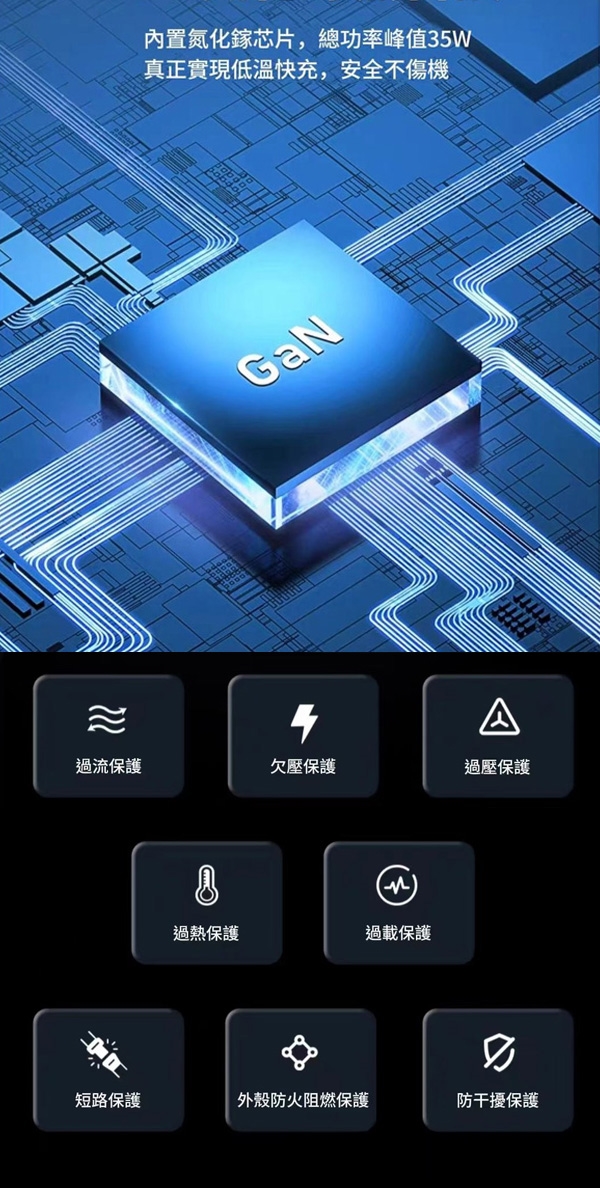CITYBOSS 35W Gan氮化鎵PD+QC 3.0(Type-C+USB)氮化鎵迷你充電器 快充頭