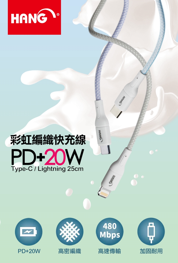 HANG R18 20W高密編織 Type-C to Lightning PD快充充電線25cm