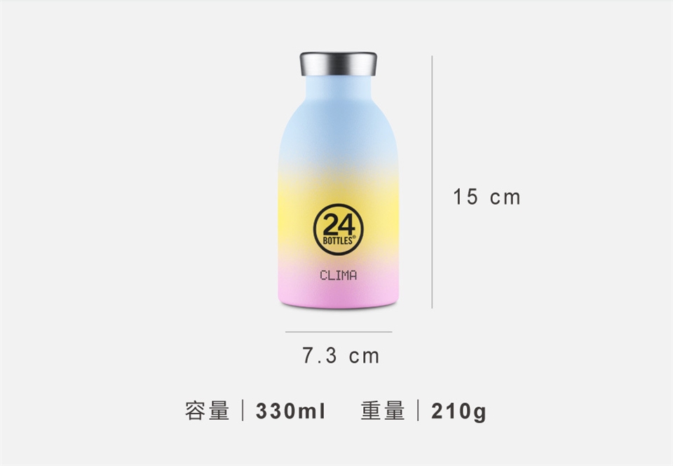 24Bottles 保溫瓶具有雙層真空斷熱層設計,有效降低熱傳導,可保溫12小時、保冷24小時。