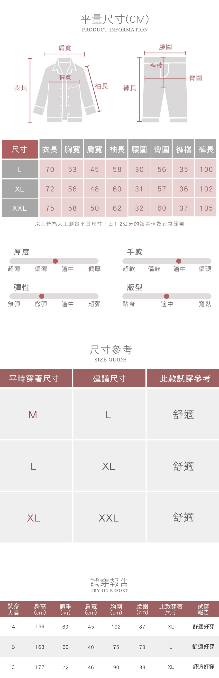 ◆商品有10天審閱期(注意!鑑賞期非試用期) ◆如需退換貨請保持商品完整,(包含購買商品、附件、內外包裝、贈品等)請一併寄回,否則將會影響退貨權限。 ◆內衣褲屬貼身物品,辦理退換貨時,除商品本身瑕疵外,一經剪標或下水恕不接受退換貨。 ◆網頁商品會因為使用不同的品牌螢幕以及解析度不同,造成圖片顏色呈現略有不同,請以實品顏色為準。 ◆本尺寸對照表標示僅供參考,實際尺寸以實品為準。 ◆請用中性洗潔劑冷水手洗,洗淨後請輕扭後置於陰涼處晾乾。請勿使用漂白劑。