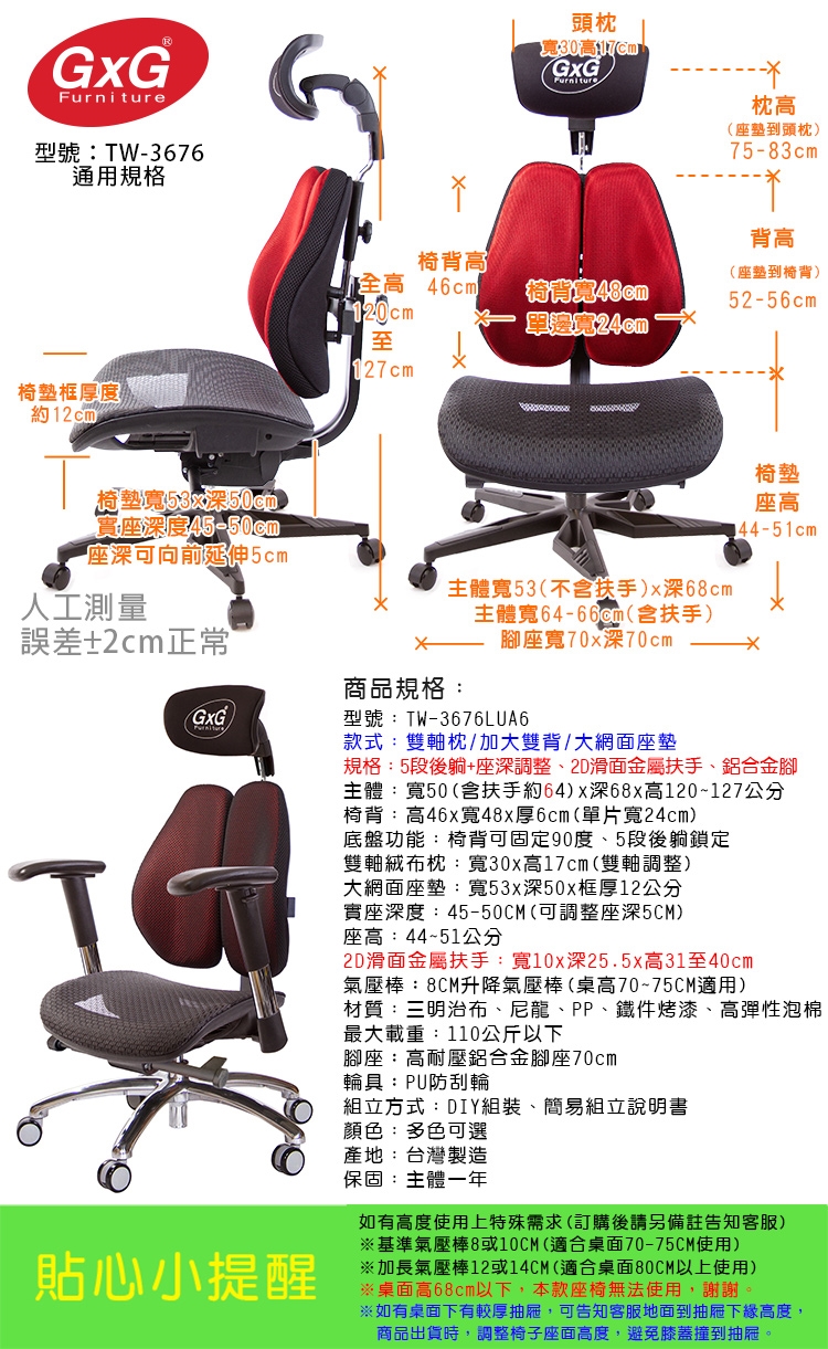 購買注意事項:本座椅高度,均以搭配標準桌高70~75CM使用。