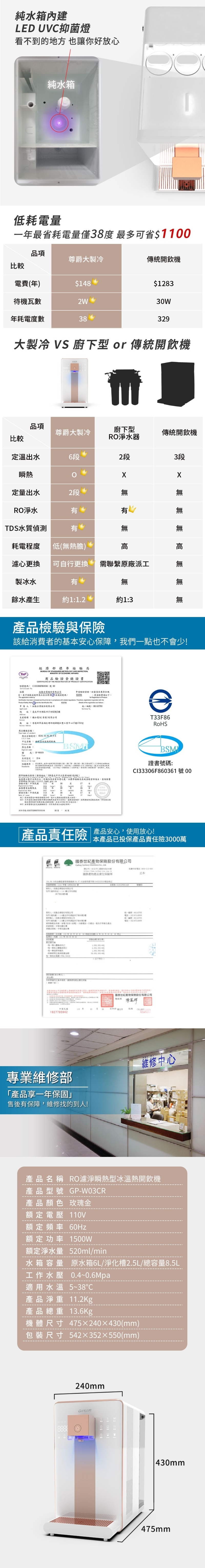 GPLUS拓勤 尊爵大製冷瞬熱開飲機 GP-W03CR