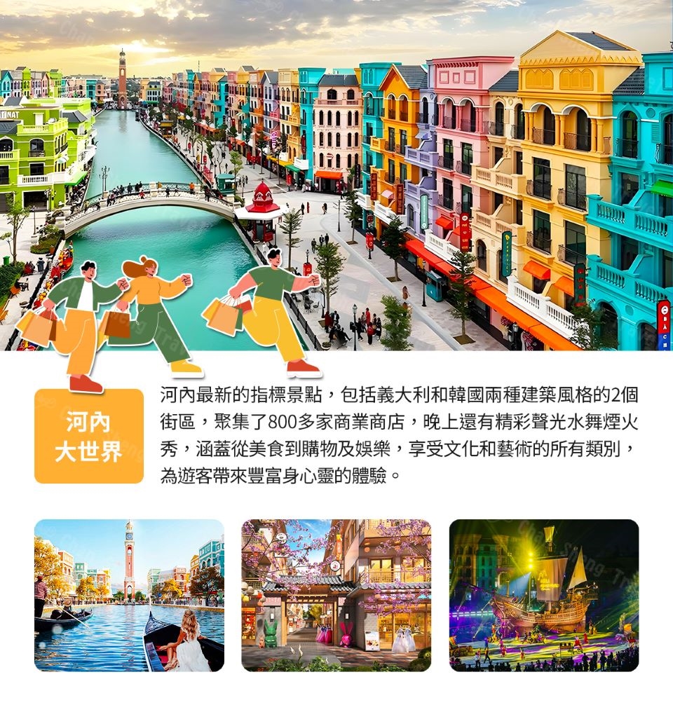 【第4天】 下龍灣~寧平~陸龍灣~長安生態景區~華閭古都~河內威尼斯大世界~東西橋、鐘樓、投幣祈福、The Grand Voyage秀(20:30-21:00)】《燈光、水舞音樂、3D映射與音樂的結合大秀》~河內 |