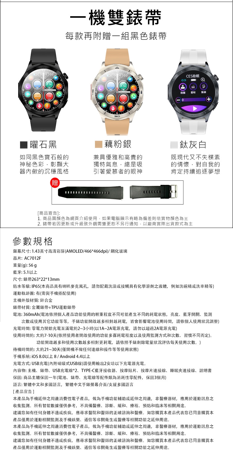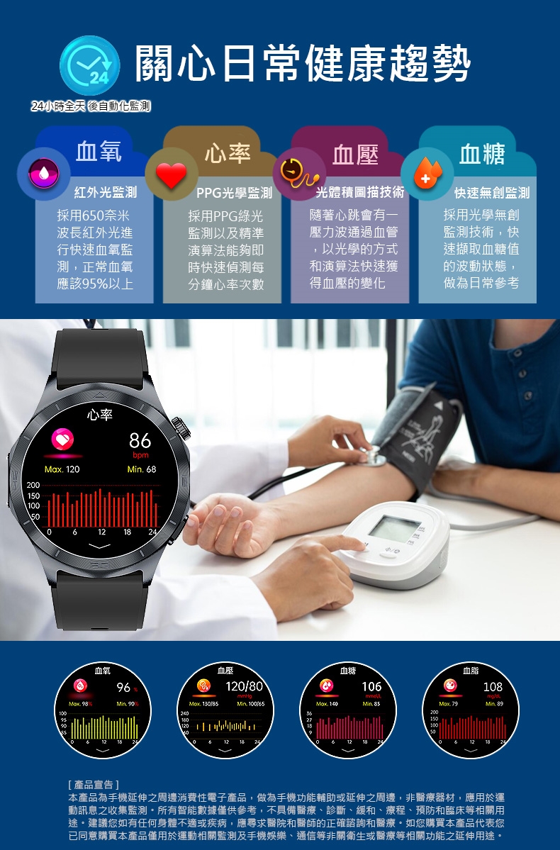 建議您如有任何身體不適或疾病,應尋求醫院和醫師的正確諮詢和醫療。如您購買本產品代表您已同意購買本產品僅用於運動相關監測及手機娛樂、通信等非關衛生或醫療等相關功能之延伸用途。