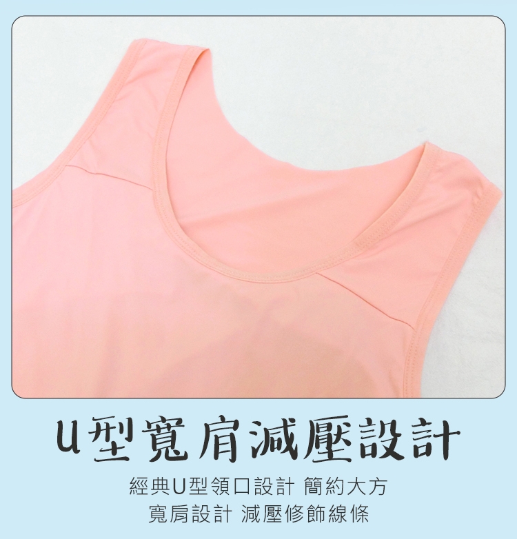 U型寬肩減壓設計,U型領口,簡約大方