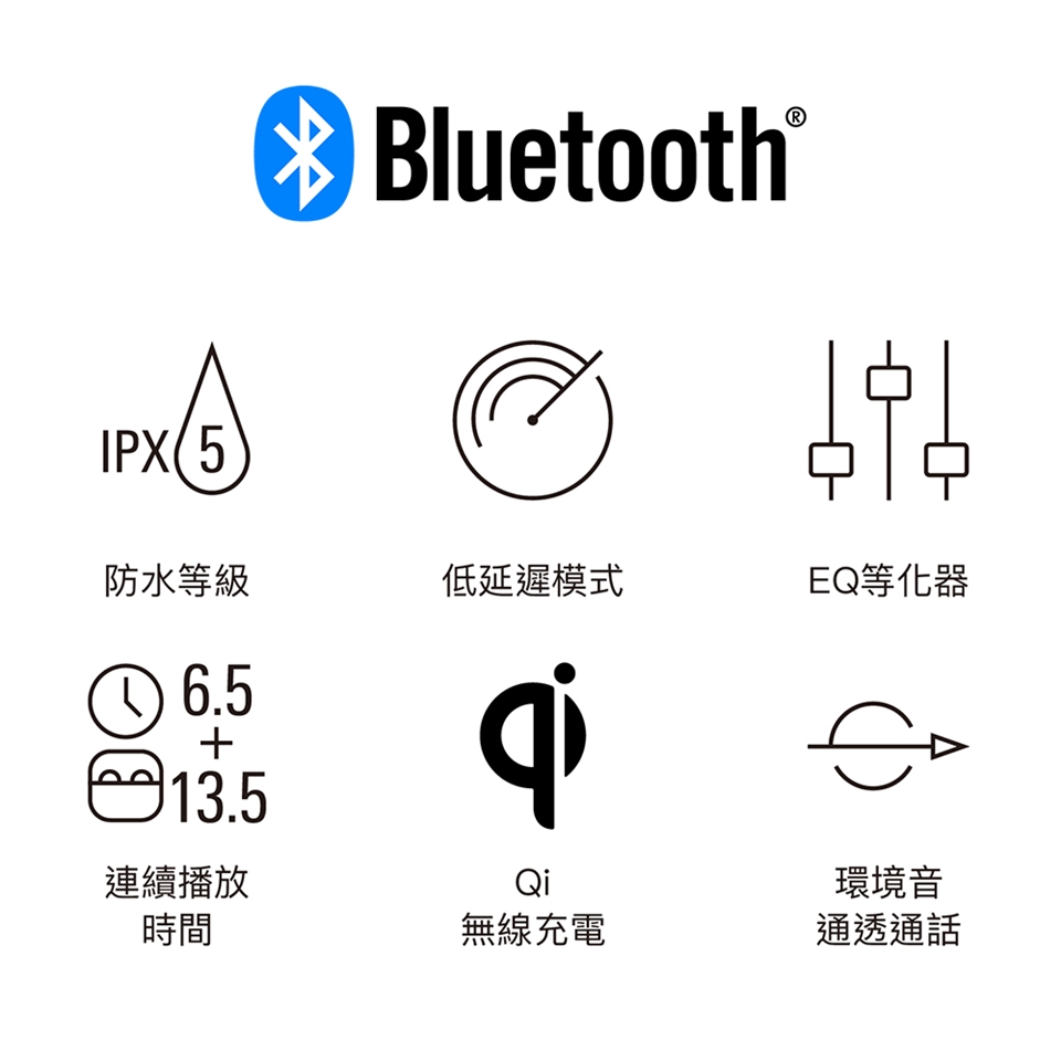 電池續航力:連續播放音樂時耳機最長約6.5小時,搭配充電盒使用最長約20小時(依據使用條件而異)