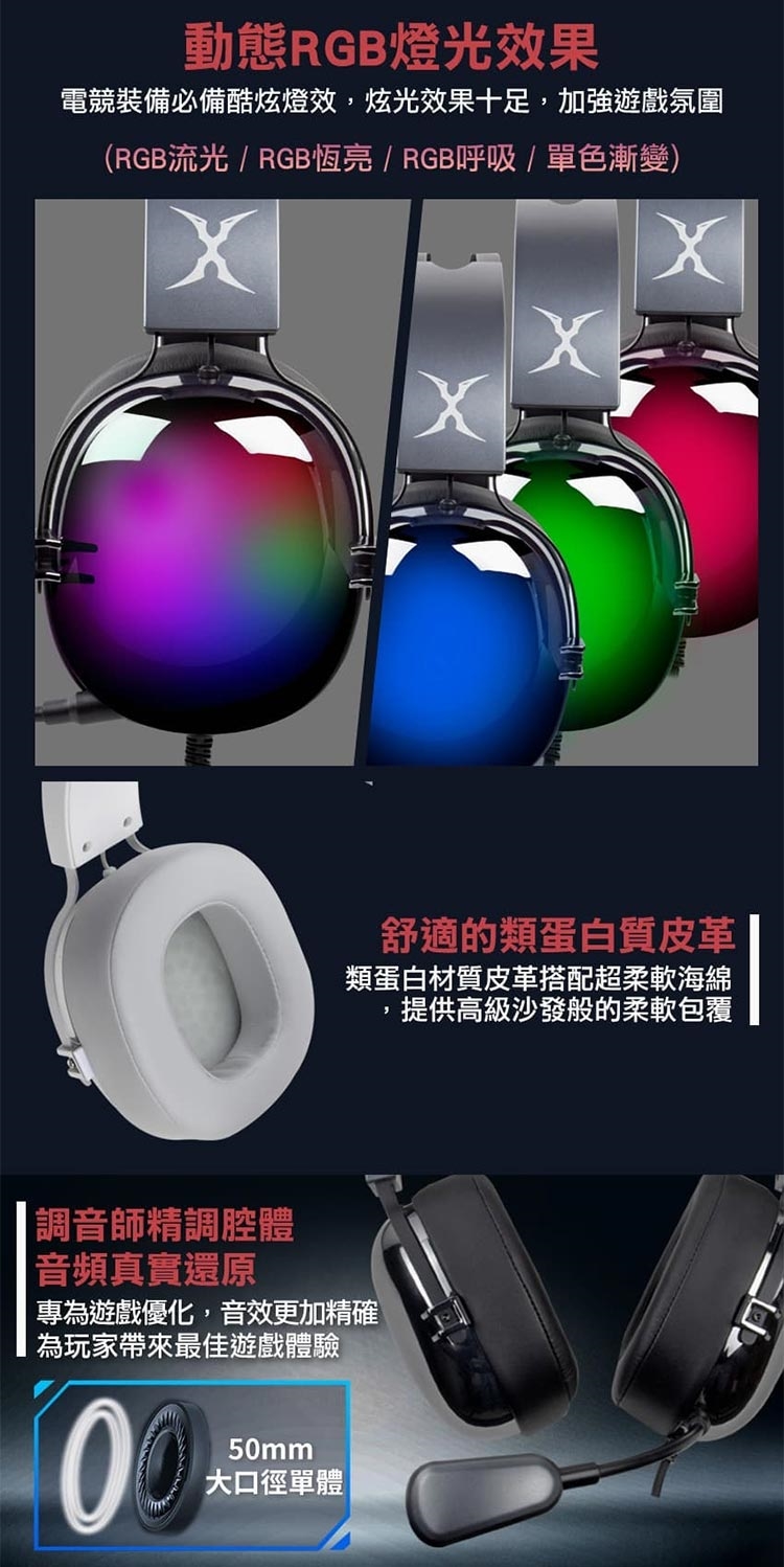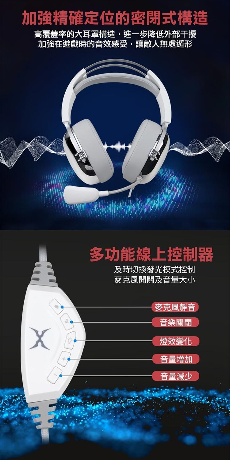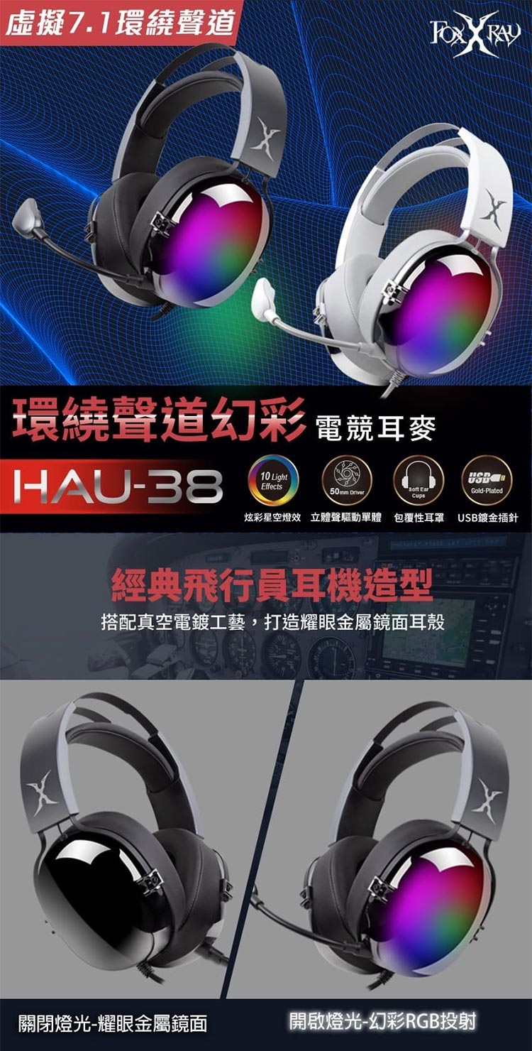 FOXXRAY 狐鐳|FXR-HAU-38 環繞聲道幻彩電競耳麥-白