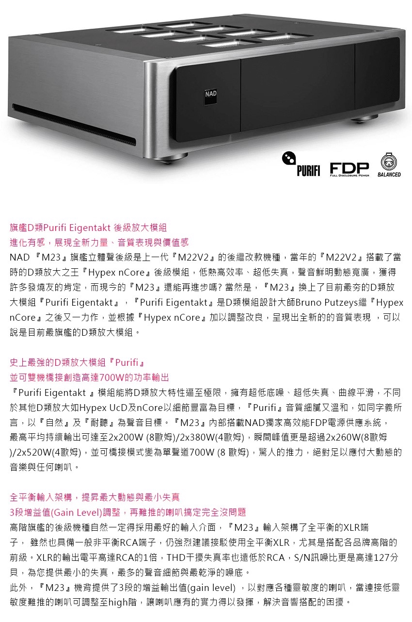 英國 NAD M23 全平衡立體聲後級擴大機 旗艦D類擴大機