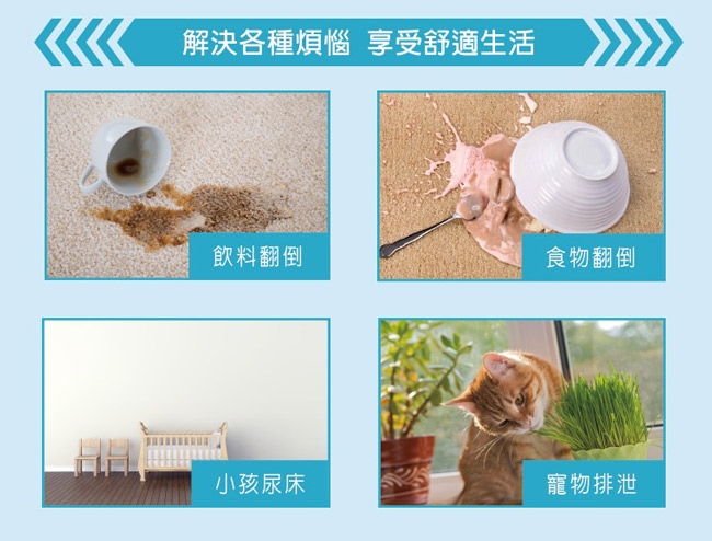 ◎輕鬆解決生活煩惱,掃除飲料或食物翻倒、小孩尿床、寵物排泄之汙漬