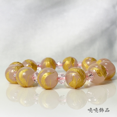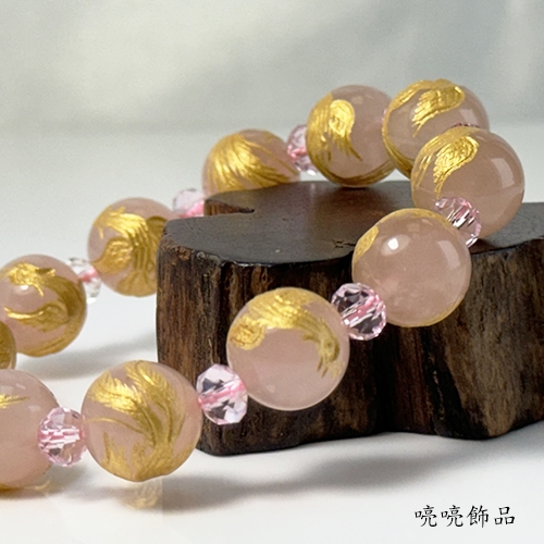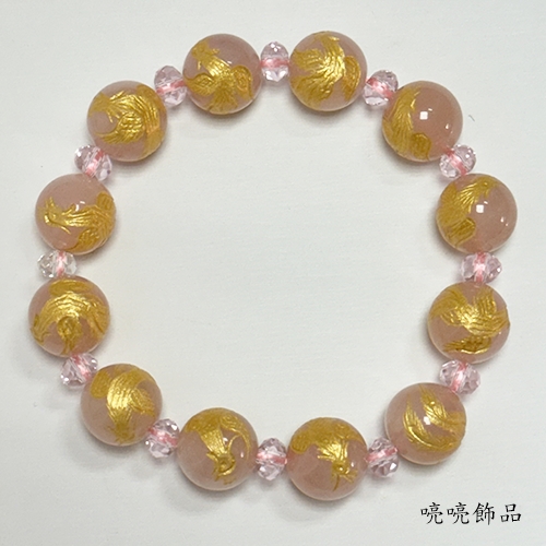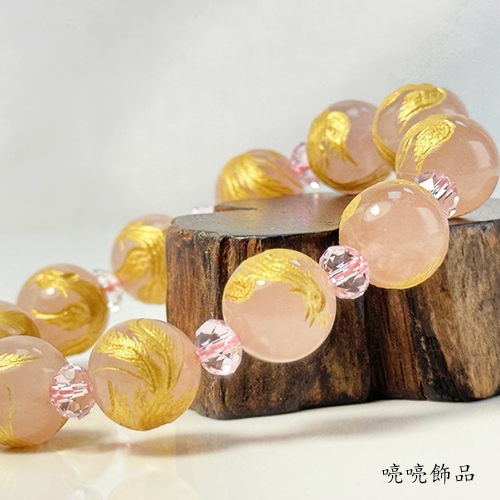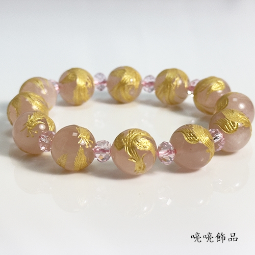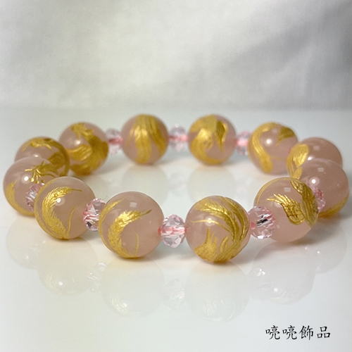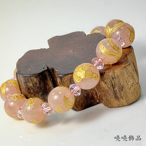 粉晶雕刻百鳥之王鳯凰(彩金色)手鍊