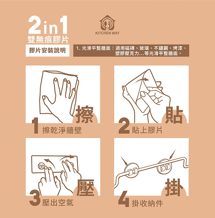 4.牆面務必清潔後再安裝。