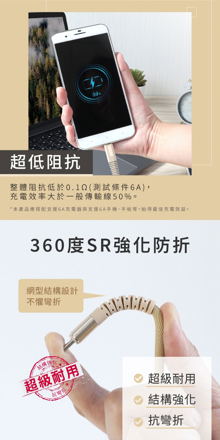 ★ 超低阻抗!整體阻抗低於0.1Ω(測試條件6A),充電效率大於一般傳輸線50%