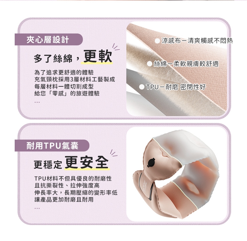 3. 枕頭產品請勿當成坐墊使用,過大的壓力有可能造成漏氣損壞。