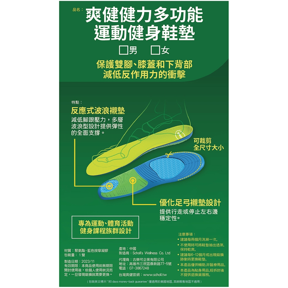 將鞋墊插入您的運動鞋或跑鞋中,凝膠面朝下。