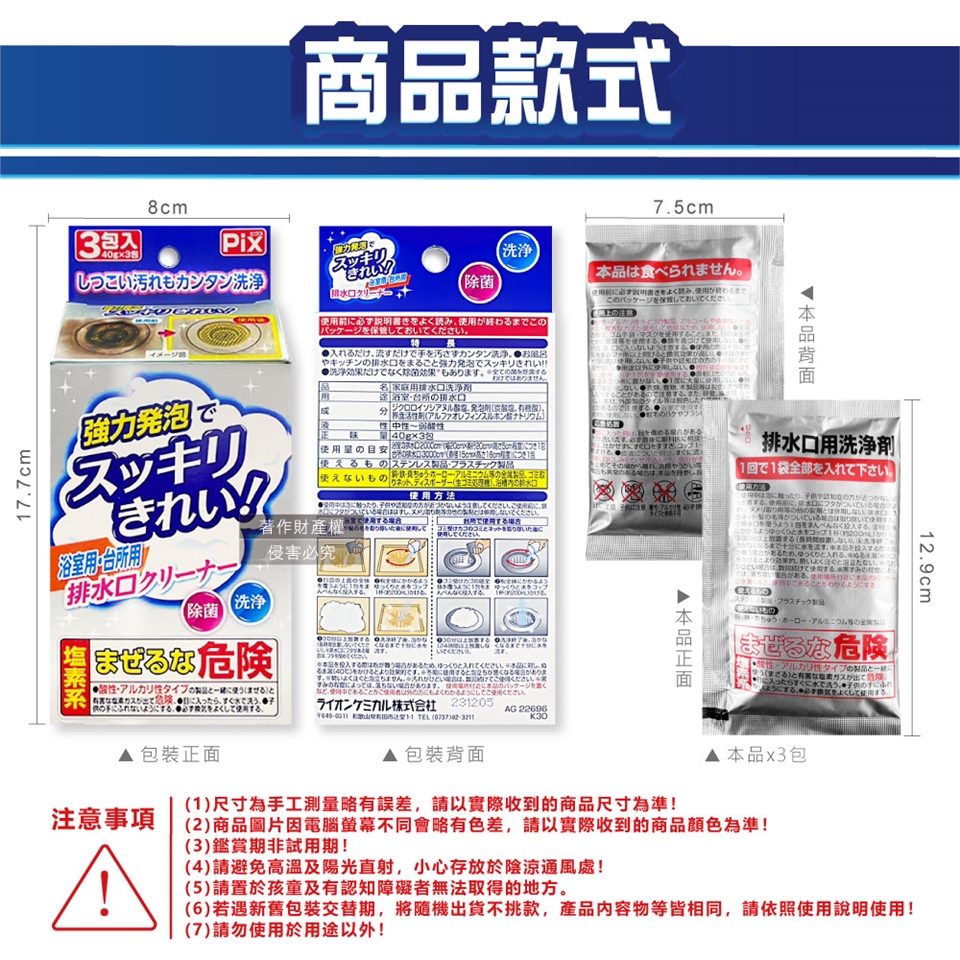 ●品名:PIX免刷洗強力發泡廚房浴室排水口濾網清潔粉
