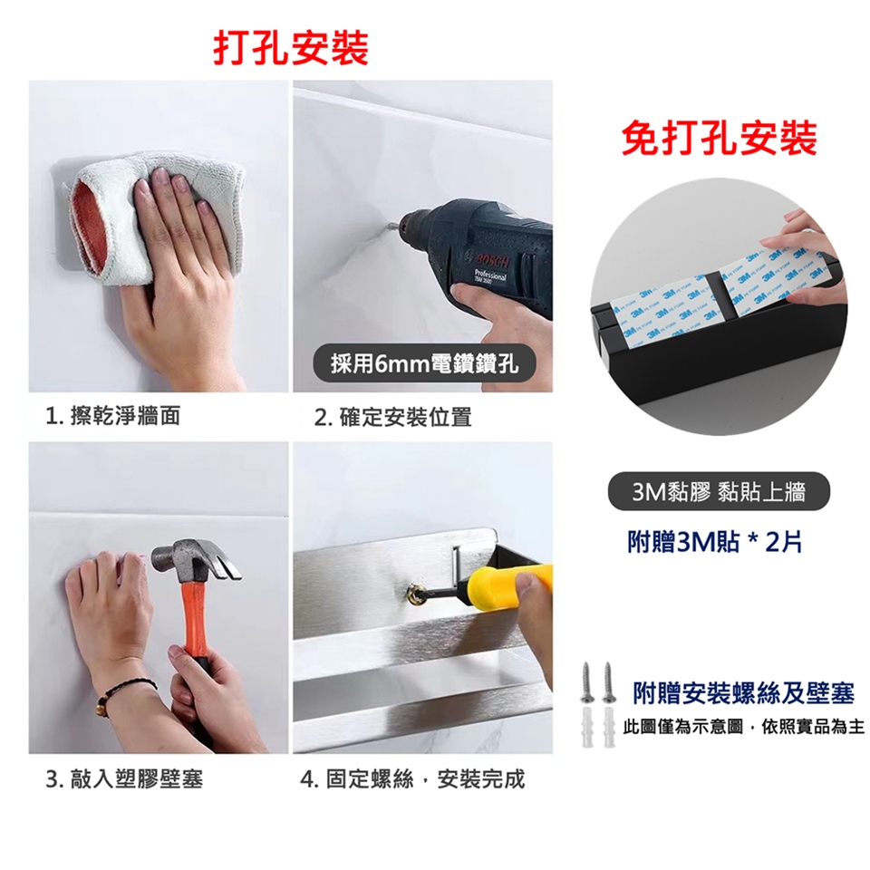 安裝說明:3M黏貼 或 打孔安裝(兩種安裝方式)
