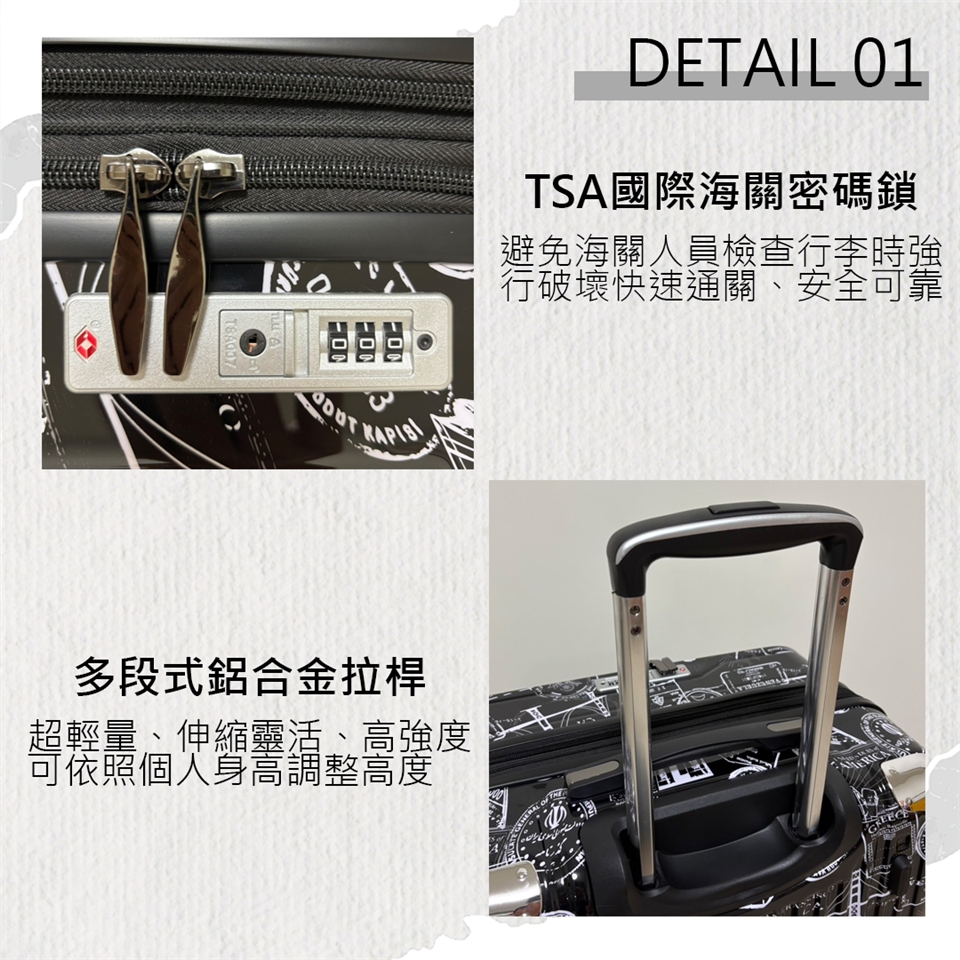 🔸雙向 TSA 國際通用海關鎖:雙向鎖定設計,符合國際標準,通關方便,確保行李安全無憂。