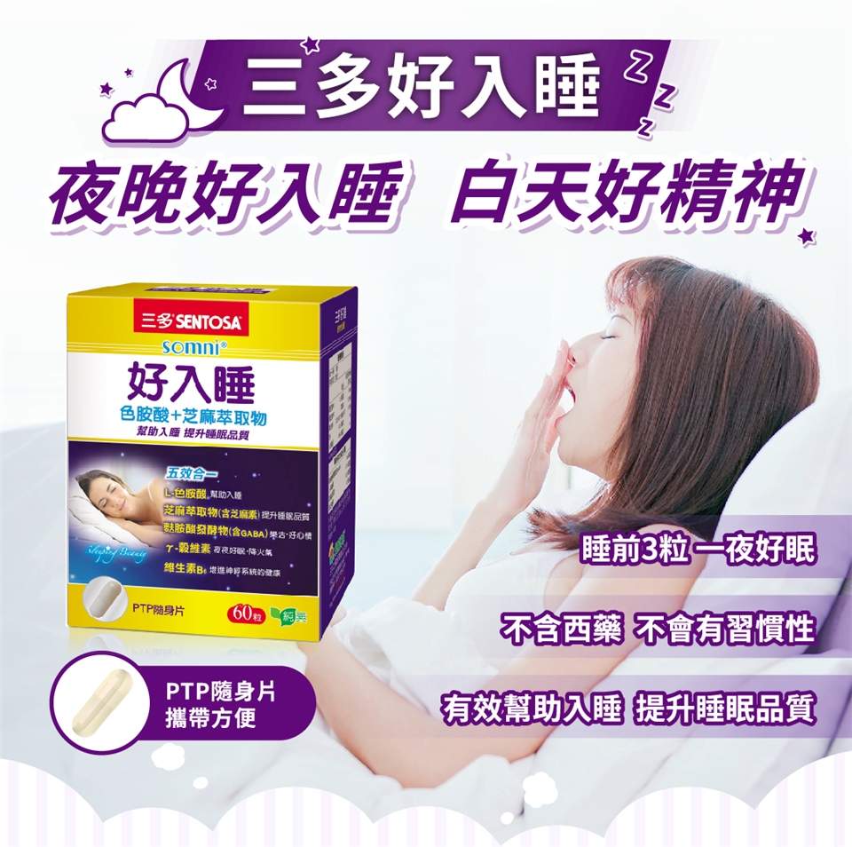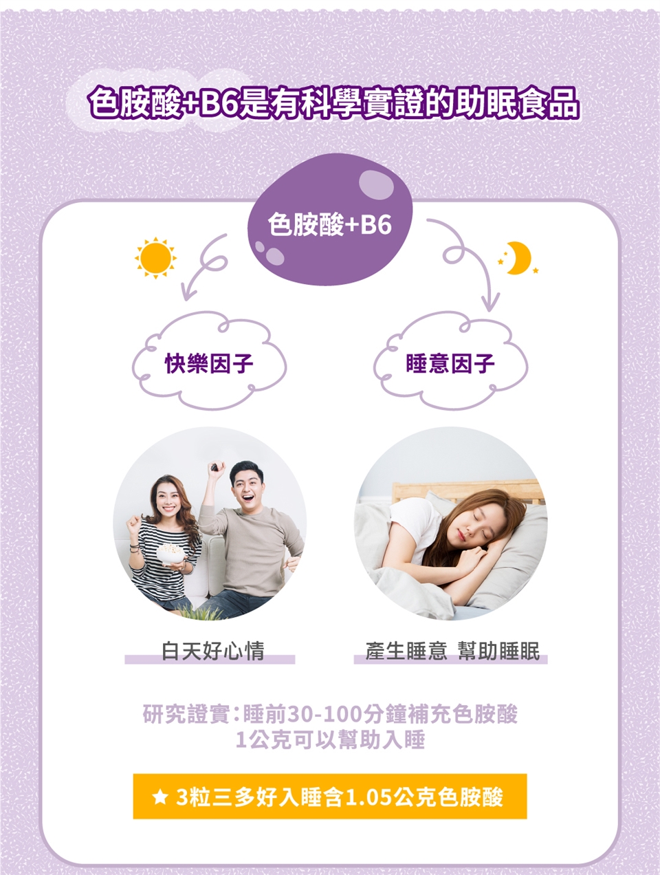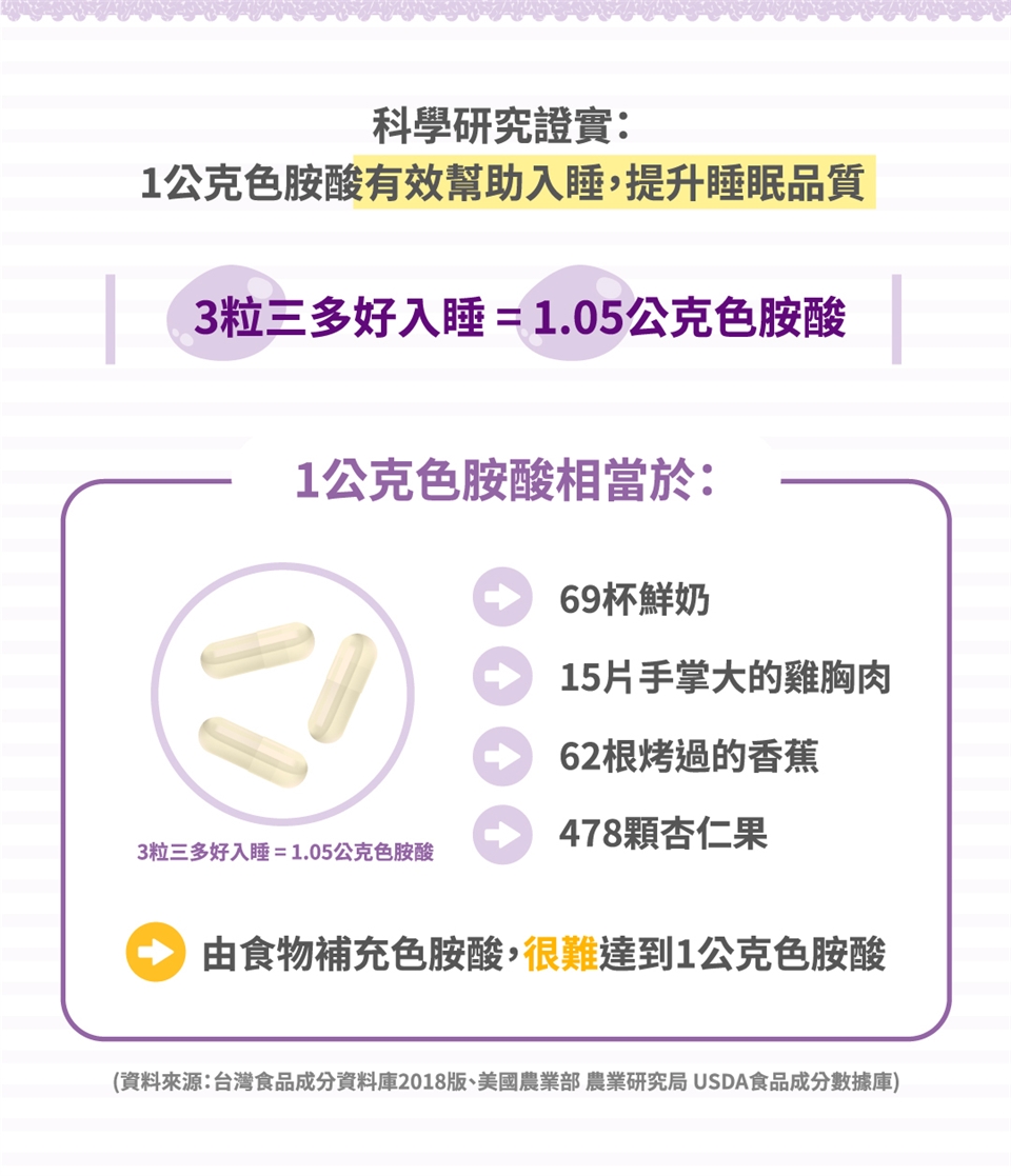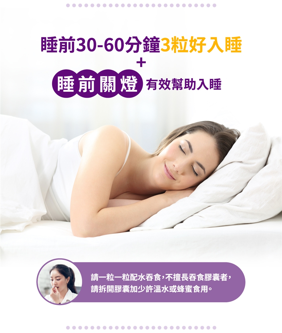 睡前30-60分鐘食用3粒(請一粒一粒配水吞食)+關燈