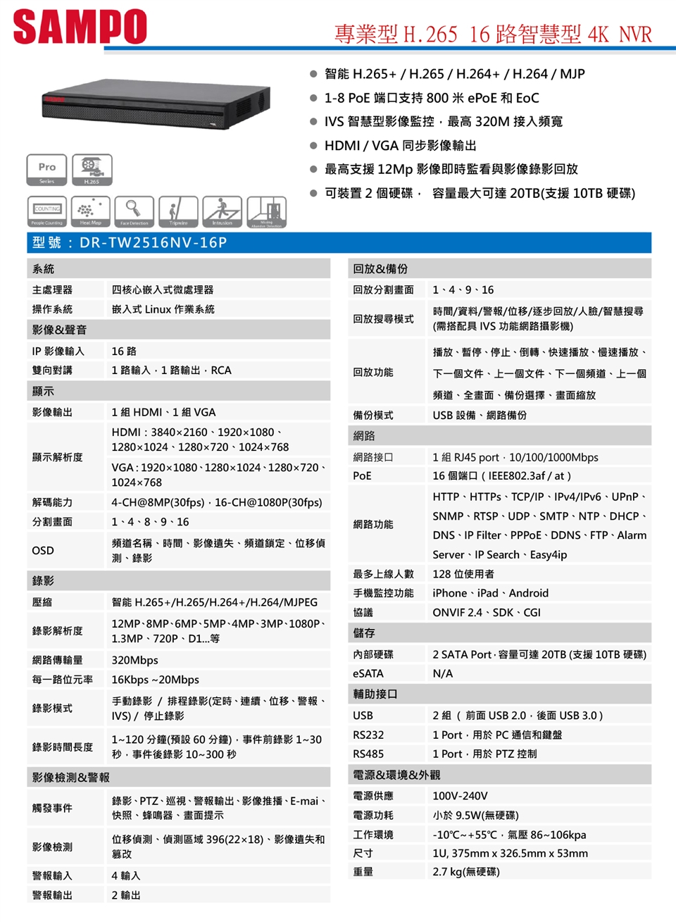 -可裝置2個硬碟, 容量最大可達20TB(支援10TB硬碟)