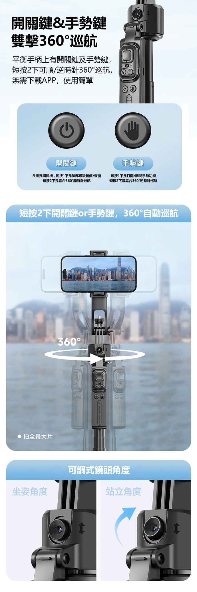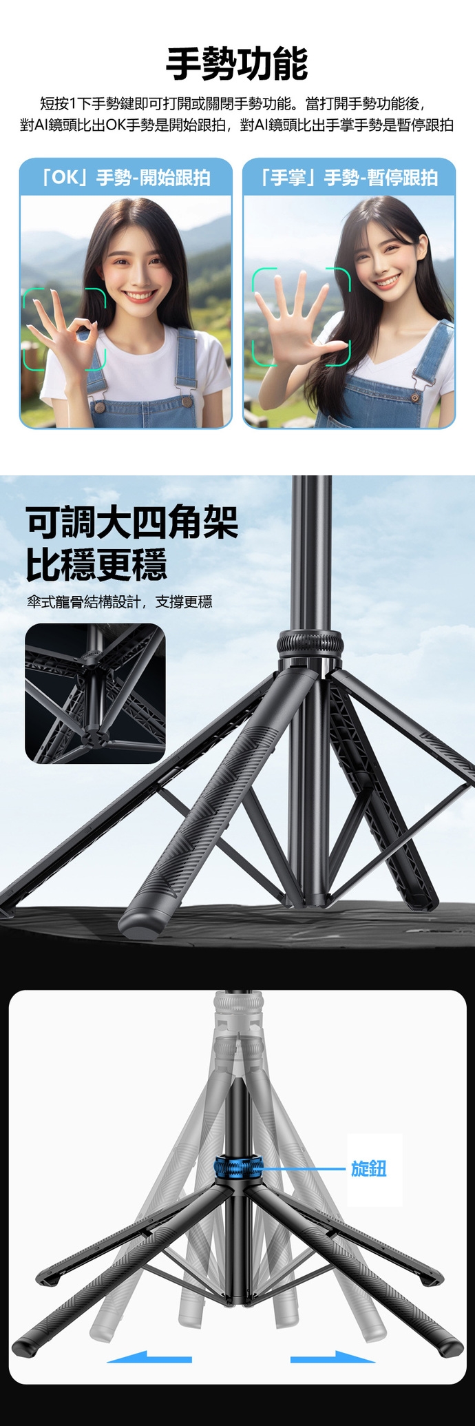 ★ 具手勢功能,對AI鏡頭比出特定手勢後可開始/暫停跟拍