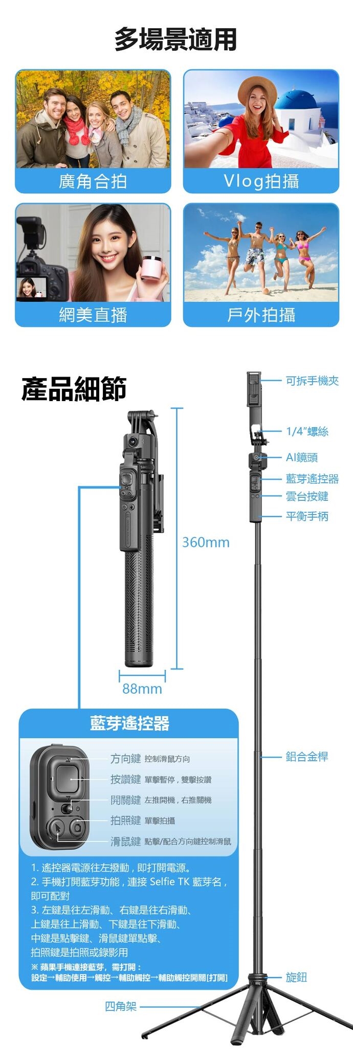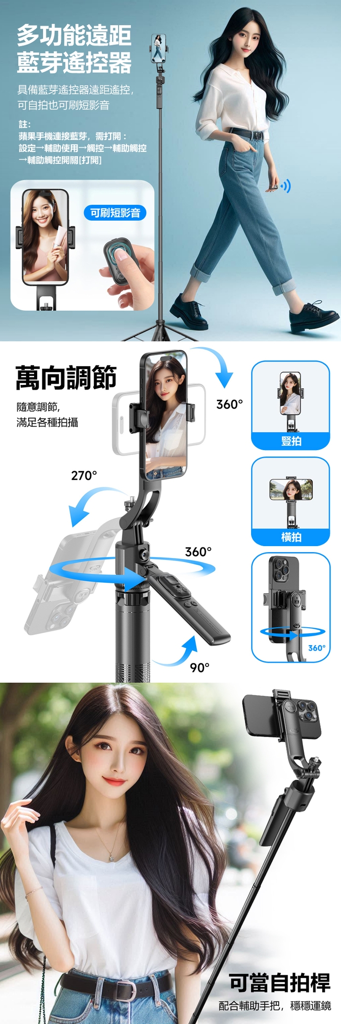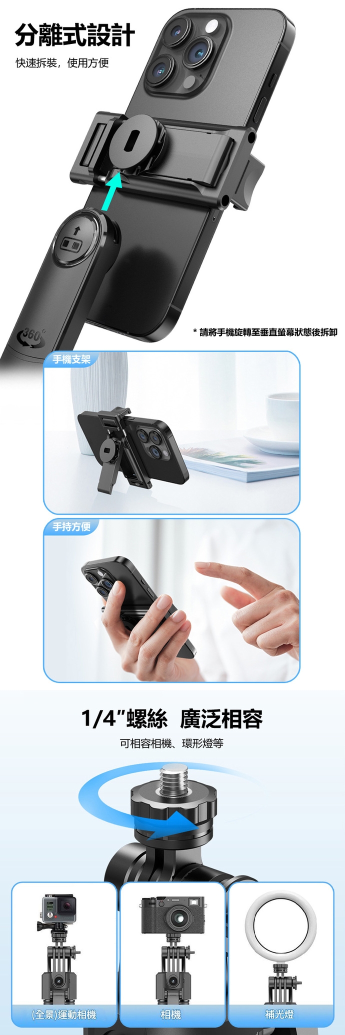 ★ 手機手持自拍桿+落地四角支架雙重功能