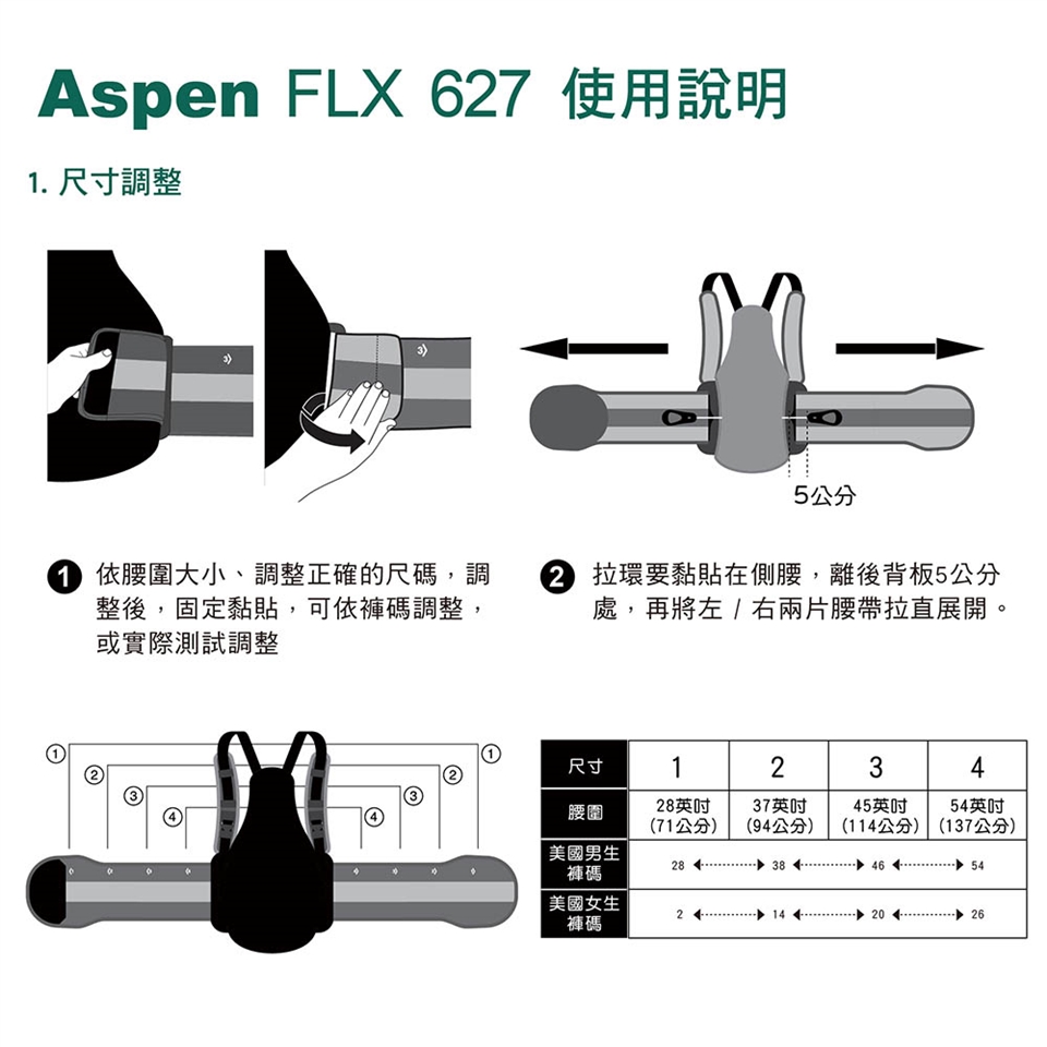美國 Aspen FLX 627 Lumbar 短硬背架